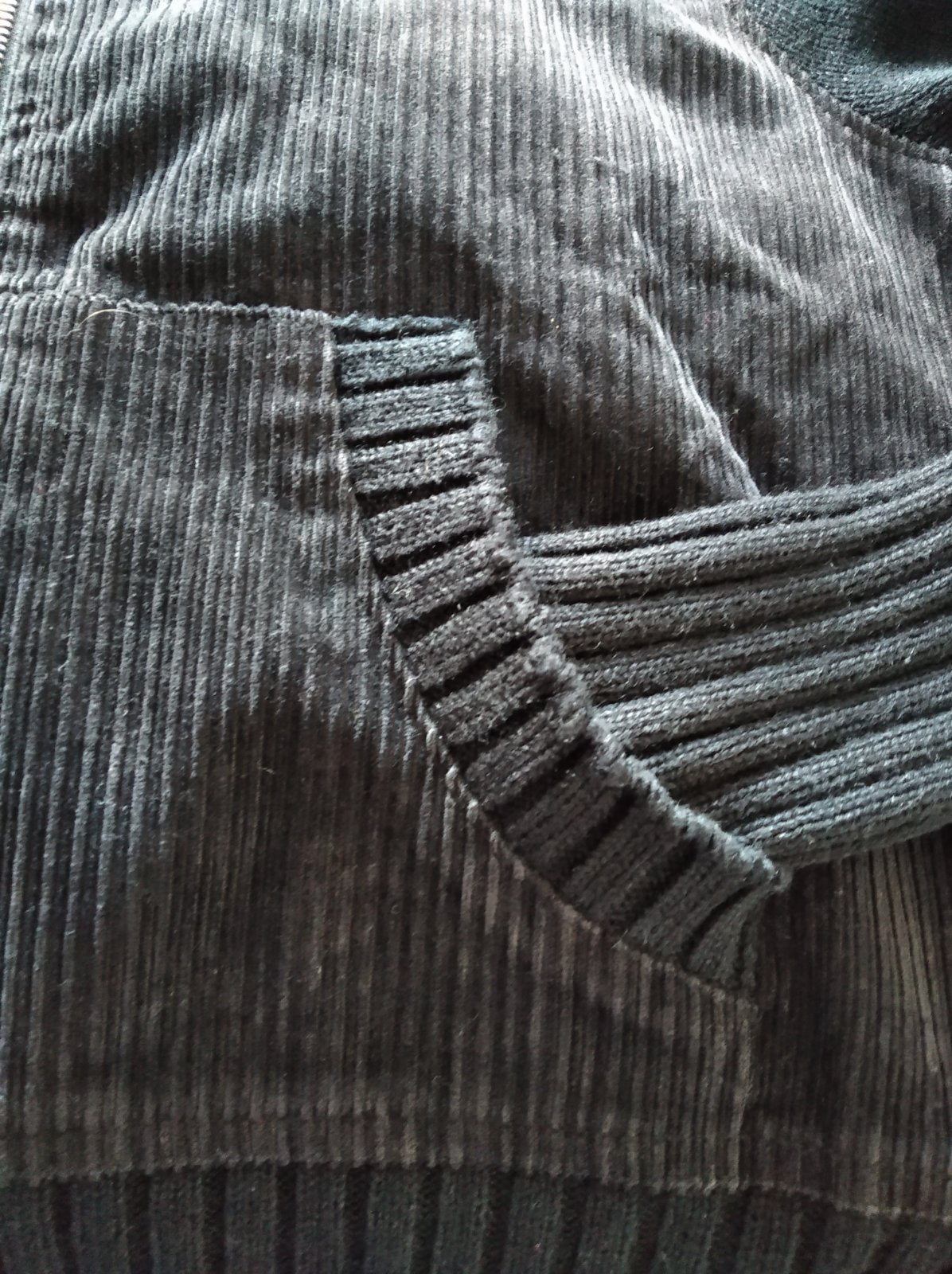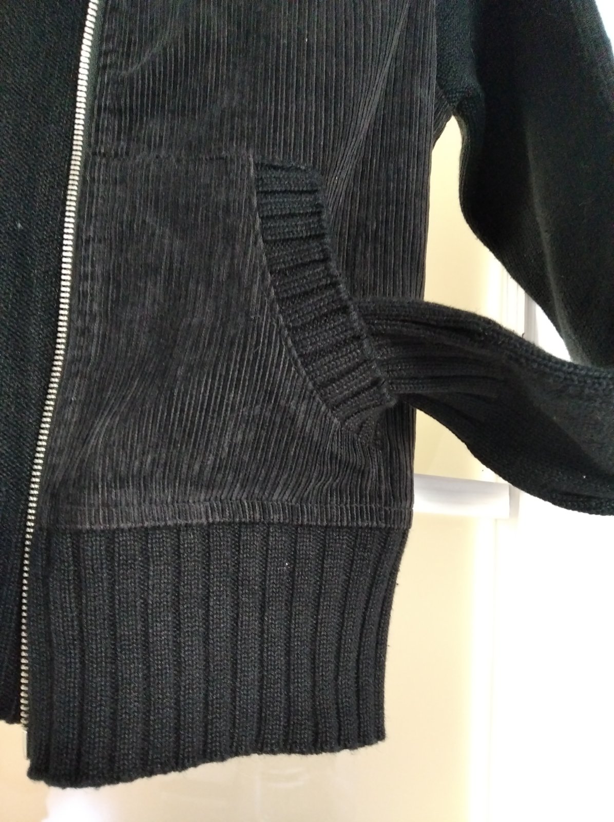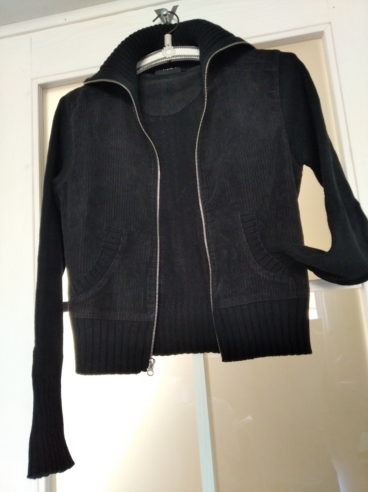 Zaujímavá bunda na zips, menčestrákovina v kombinácii s pleteninou, výborný stav.