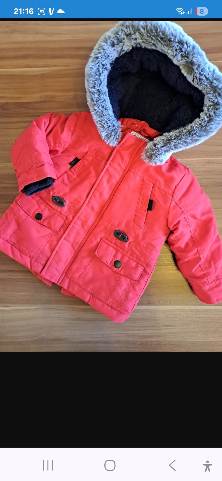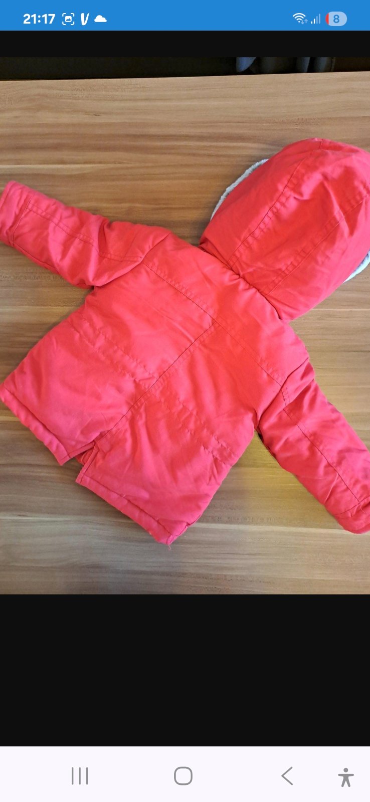Krásna bundička len bez visačky,kúpená v predstihu no malý vyrástol,veĺ.9-12 mes.Je mäkučká.Dl.38cm.oh 32x2,ruk.od krku 33cm,od pleca 27cm,rukáviky majú patenty.