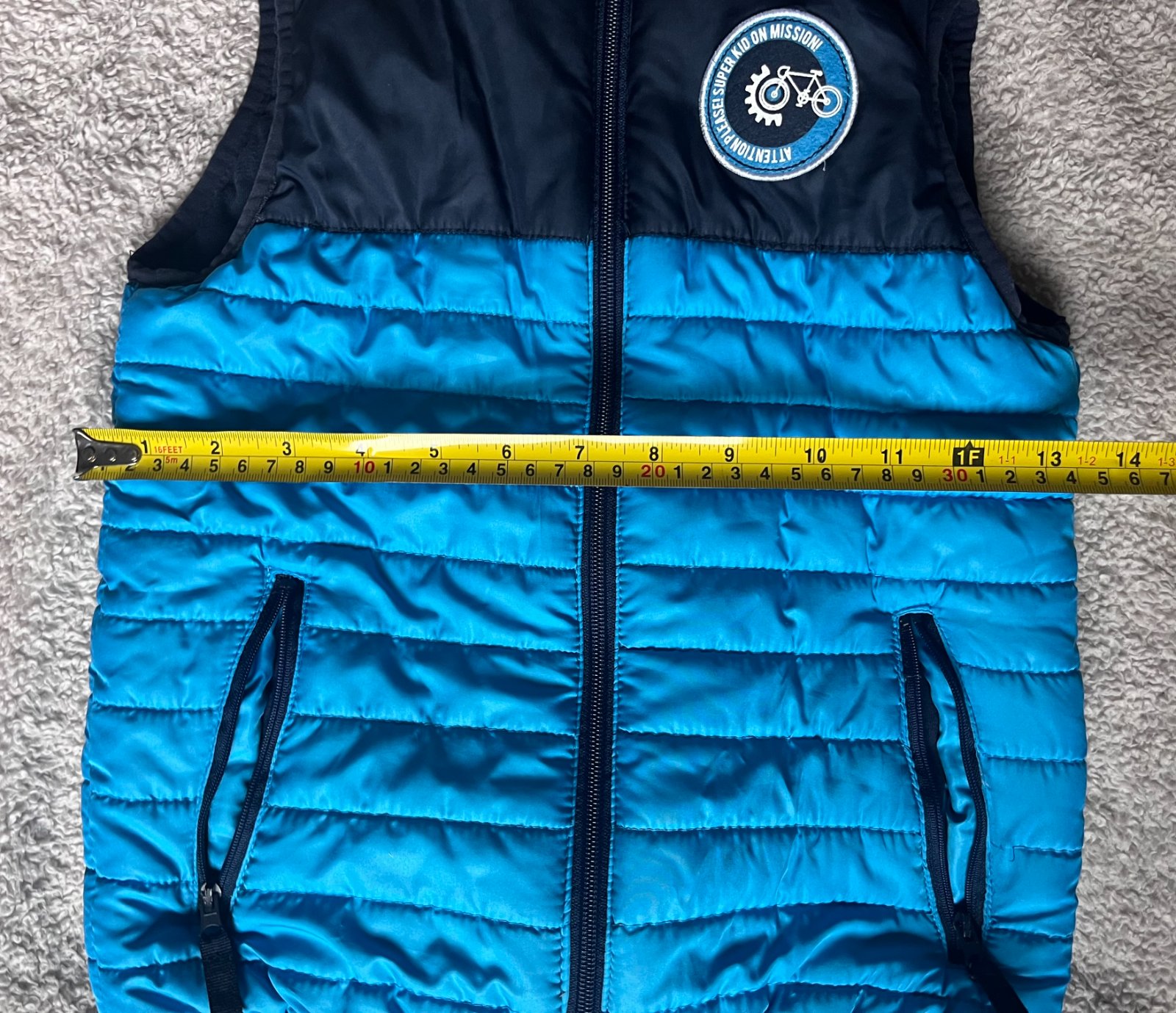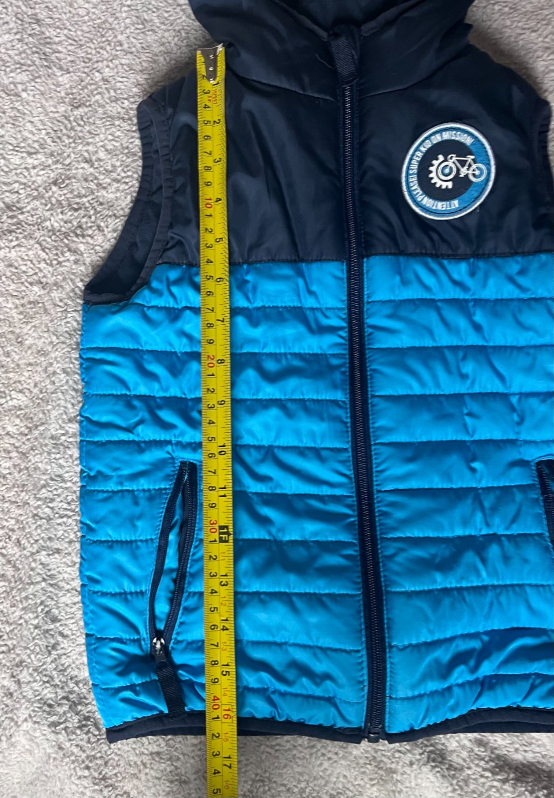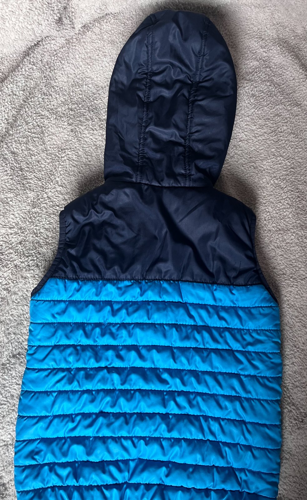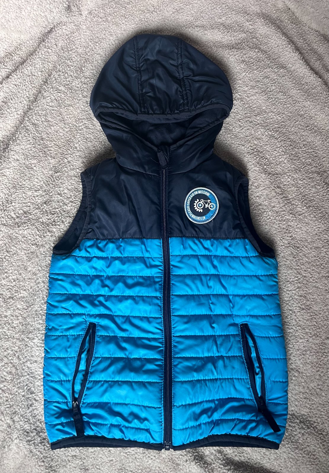 Nepremokavá podšitá vesta, málo nosená, vo veľmi dobrom stave. Veľkosť 122/128. Zapínanie na zips.