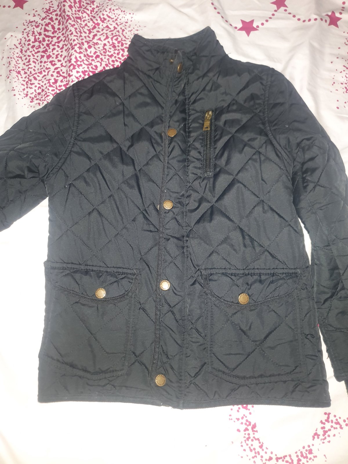 Bunda čierna predĺžená, veľkosť 134, Prechodna, znacka here +there,, dlzka od ramena 60cm, rukav od podpazuchy 37,5cm od ramena rukav 49,5cm +rameno 10,5cm,,širka od jednej podpazuchy po druhu 2x 4...