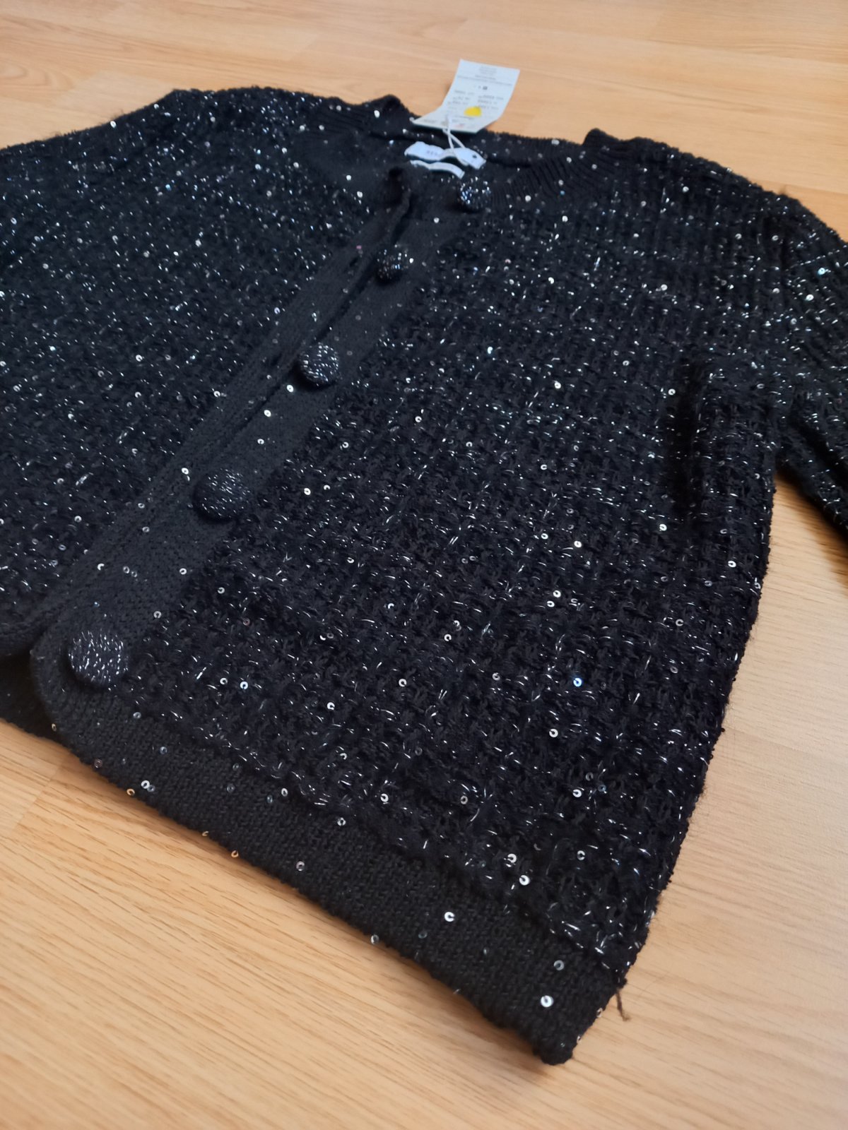 Novy s visackou. Dlzka 46cm, sirka v podpazusi 44cm, rukav od krku/podpazusia 68cm/45cm. So striebornou nitou. Povodna cena 29,90€