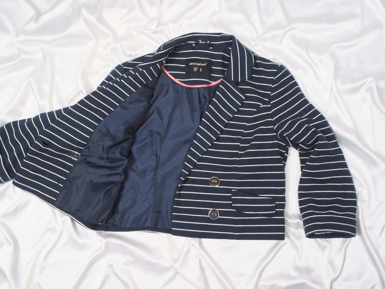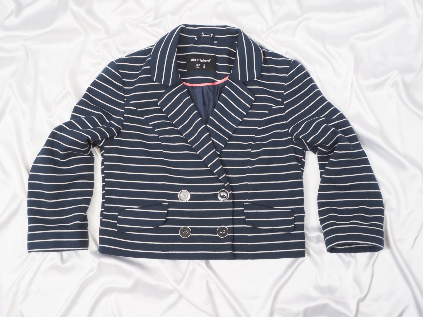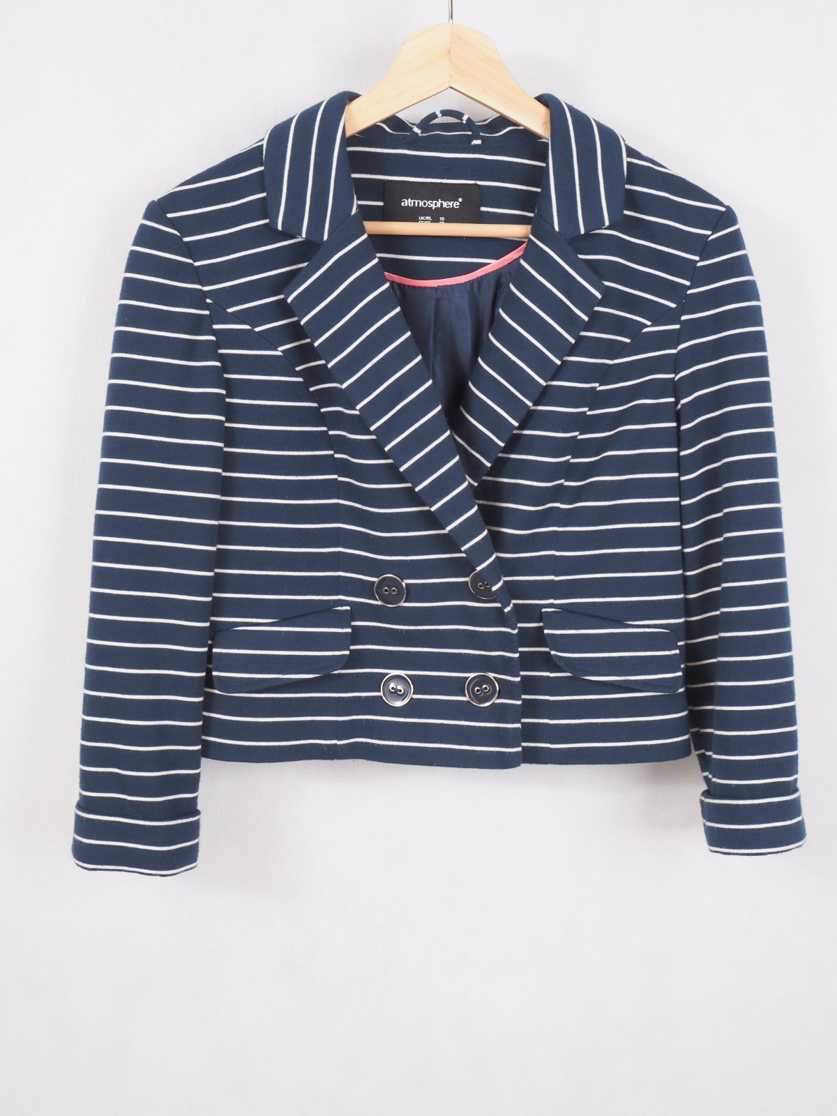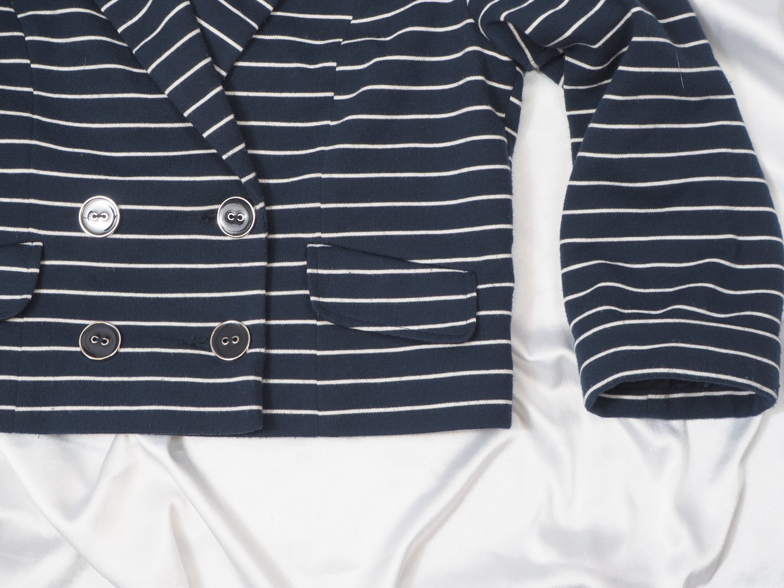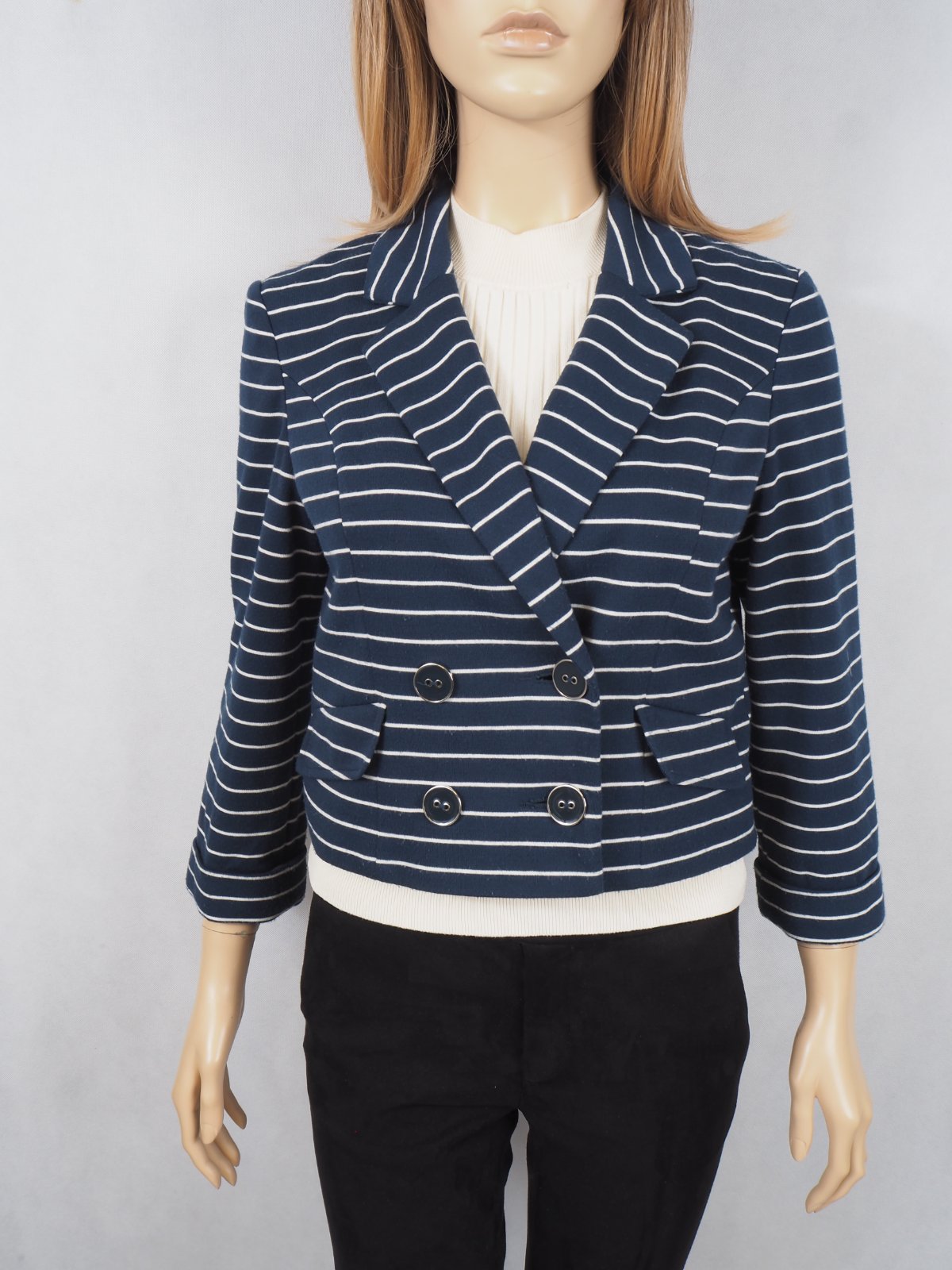 Kvalitné úpletové sako, zapínanie na gombíky v dvojrade, materiál 76% polyester,23% viskóza, 1% elastan, super stav.
