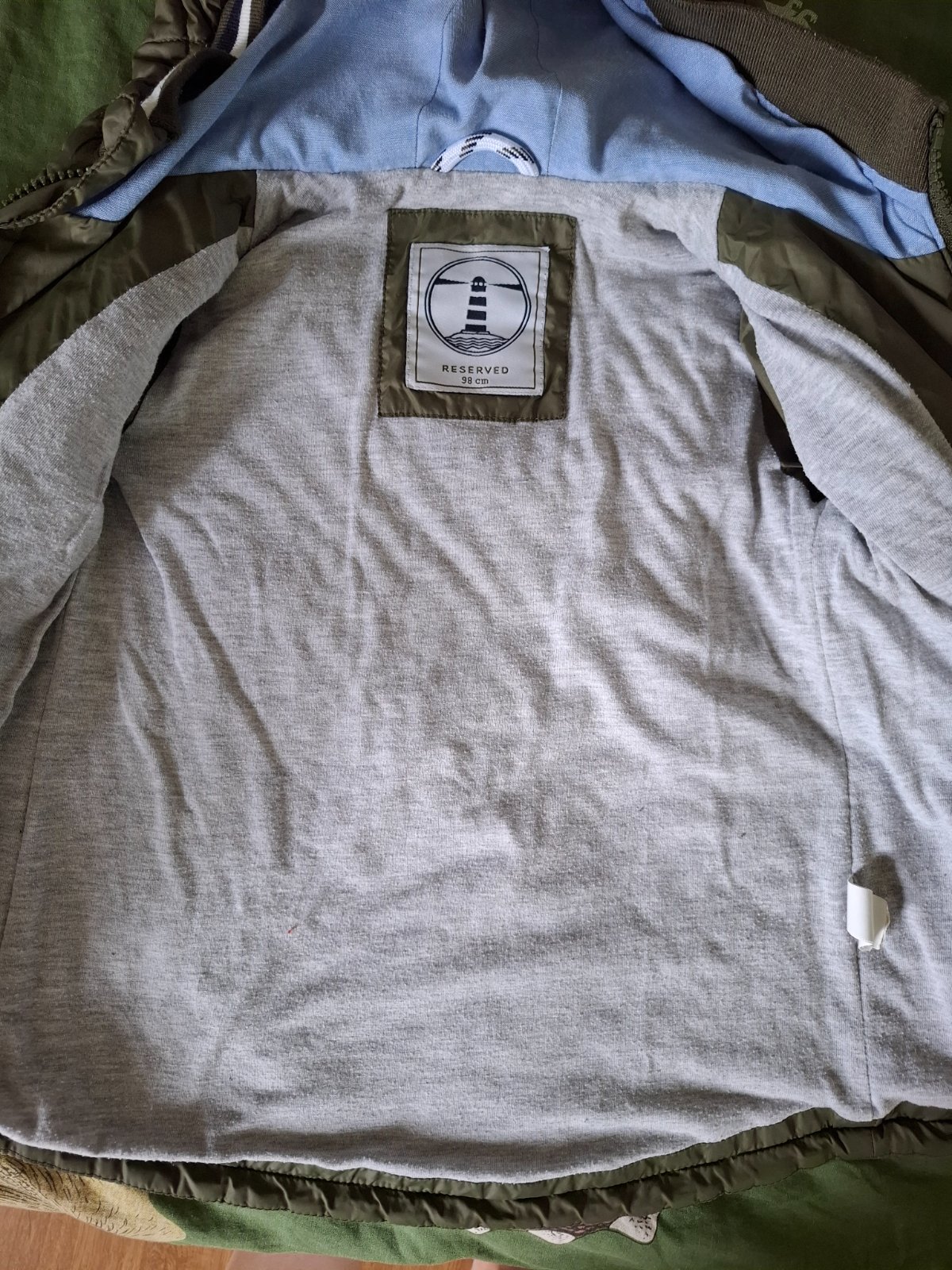 Krásna prechodná bunda pre chlapca značky Reserved, v. 98, ale podľa mňa menšia. Má nedostatky v podobe uvoľneného prešitia, ale určite ešte poslúži.