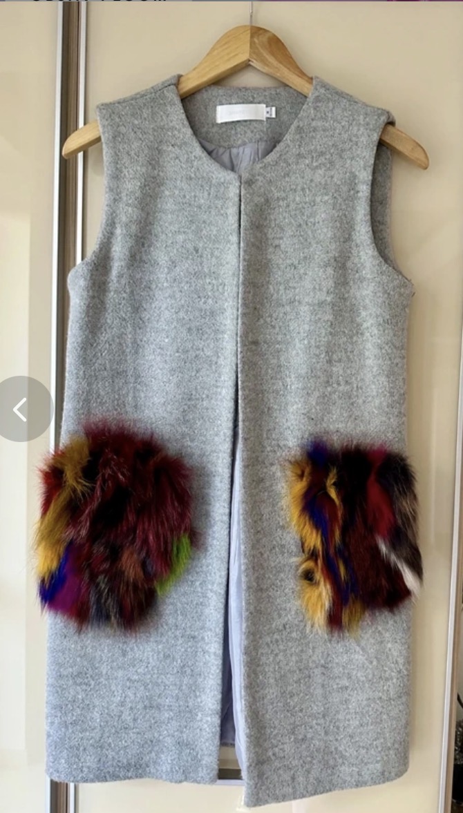Krásna vesta v top stave, ako nová. Zapínanie v predu na jeden háčik. Nádherné vrecká oživia celú vestu.