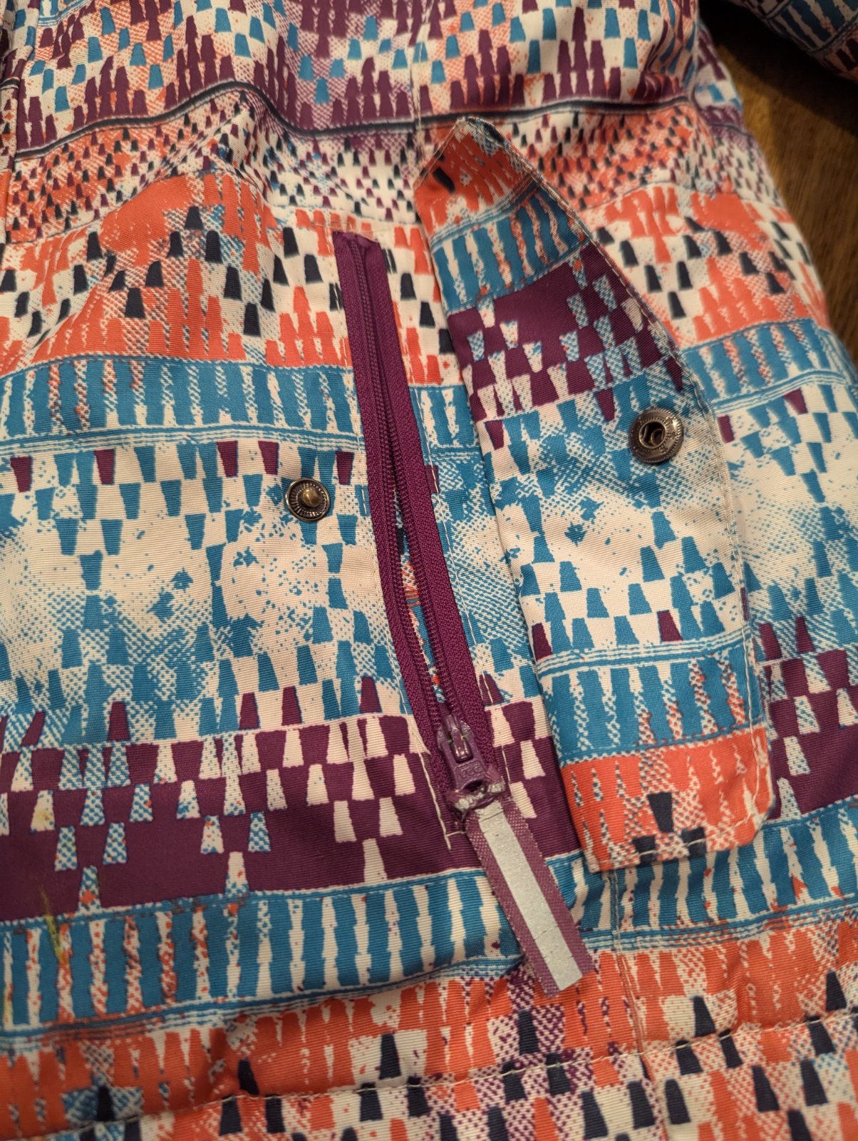 134/140,Trošku vyblednutia, ale zipsy fungujú a zahreje stále.