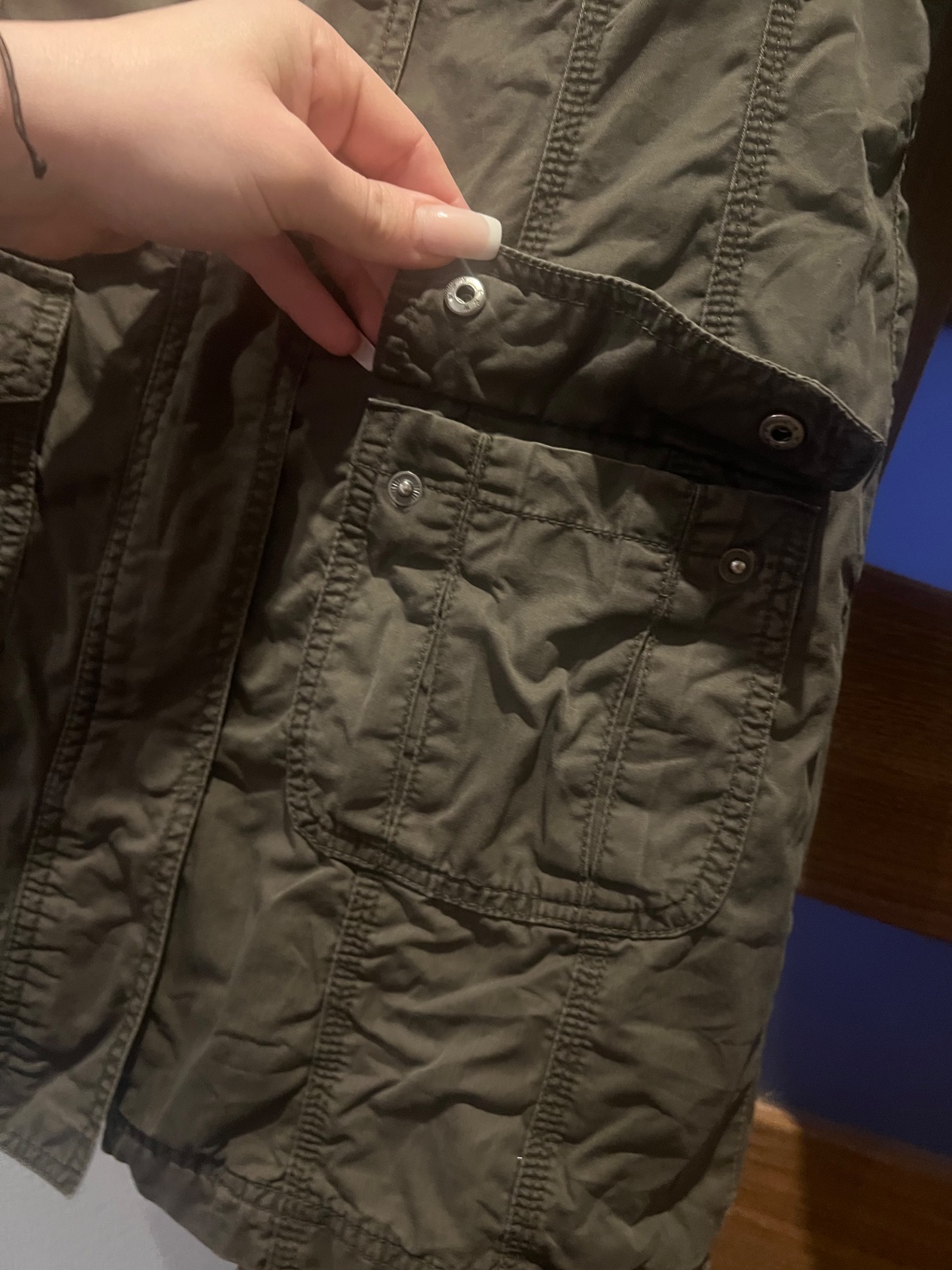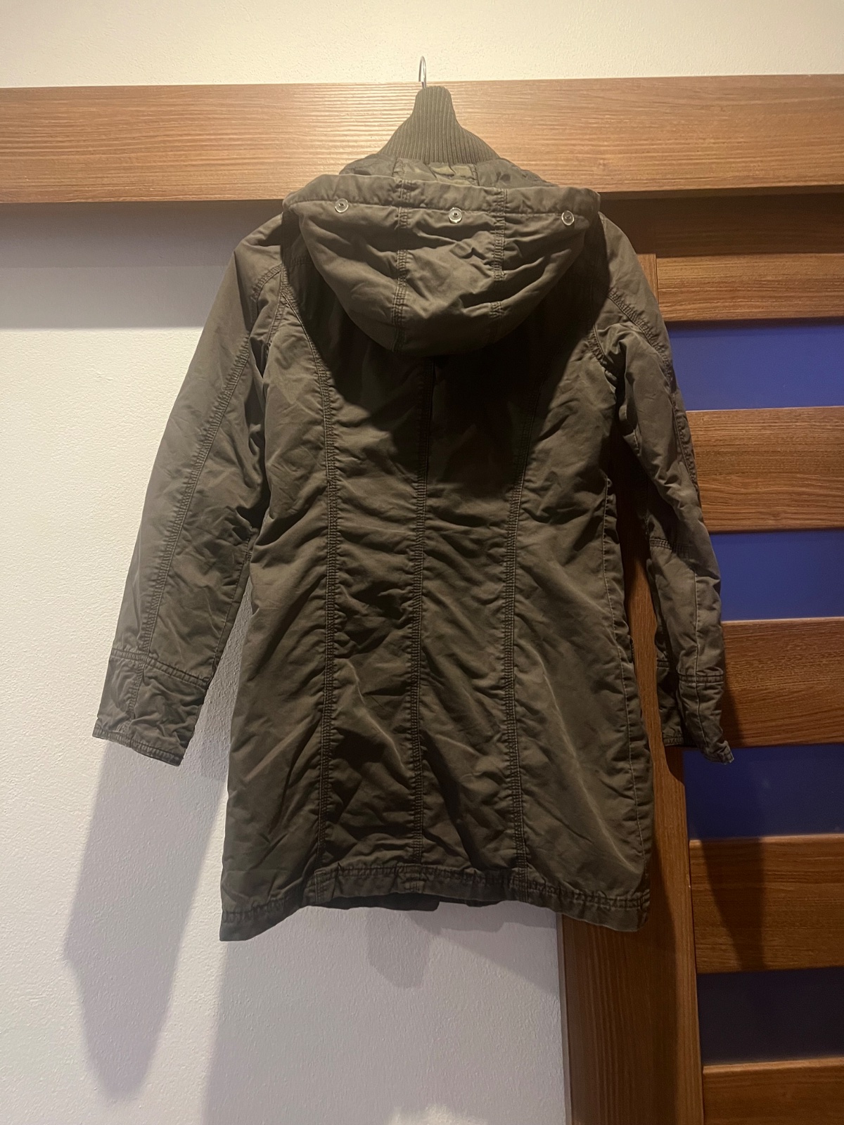Bunda do pásu s veľkým golierom khaki farby. Použitá asi 4x. Bez poškodení.