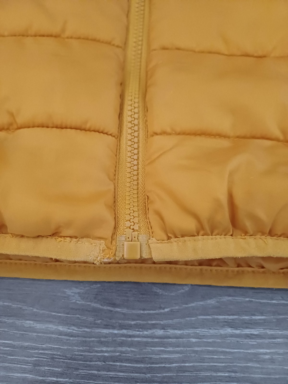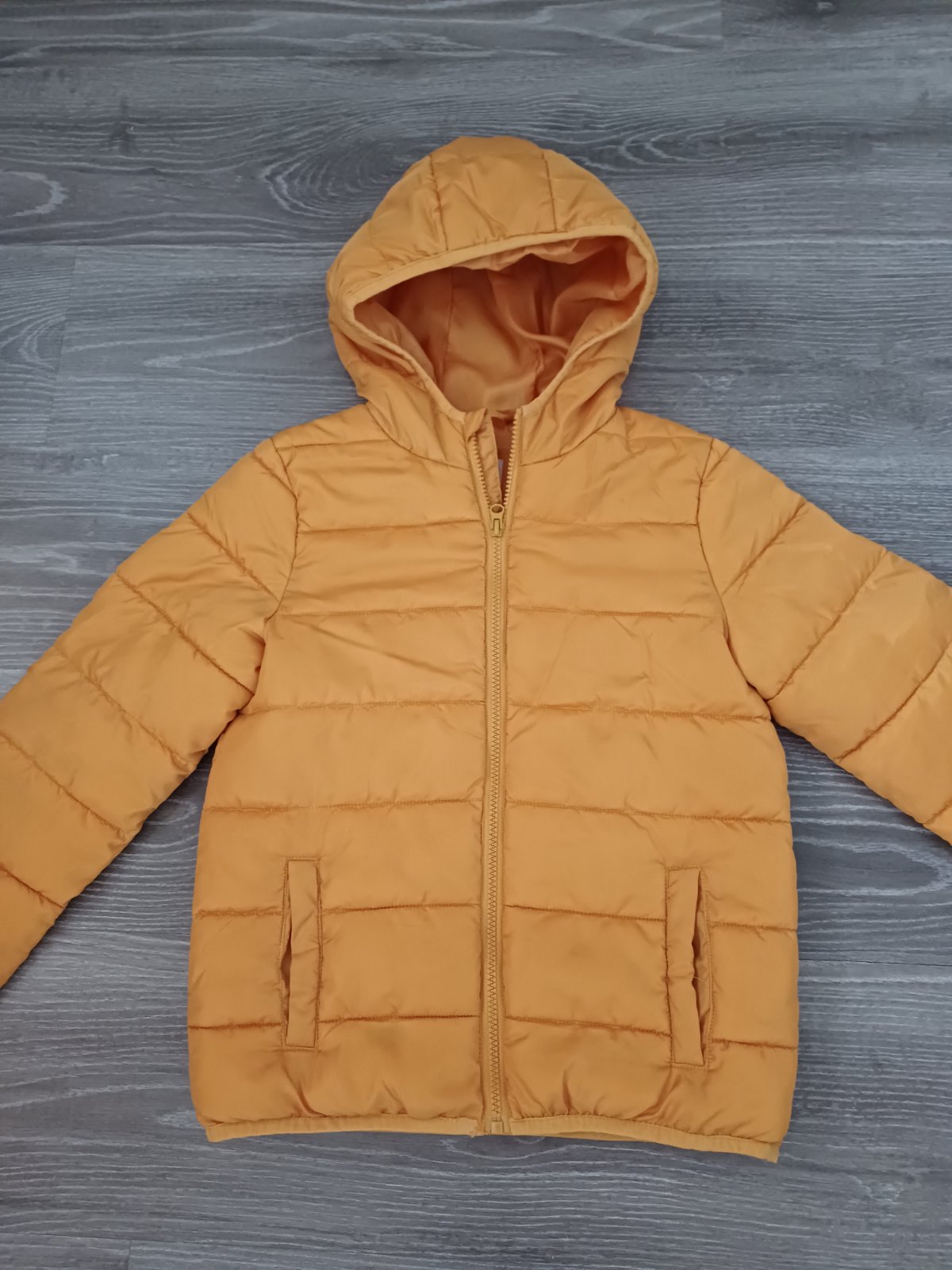 Prechodná bundička, rukáv od krku 58 cm, dĺžka 52 cm, šírka 43 cm, dole pri zipse sa začala párať, zašila som, pozri foto, žiadne iné poškodenia nemá.