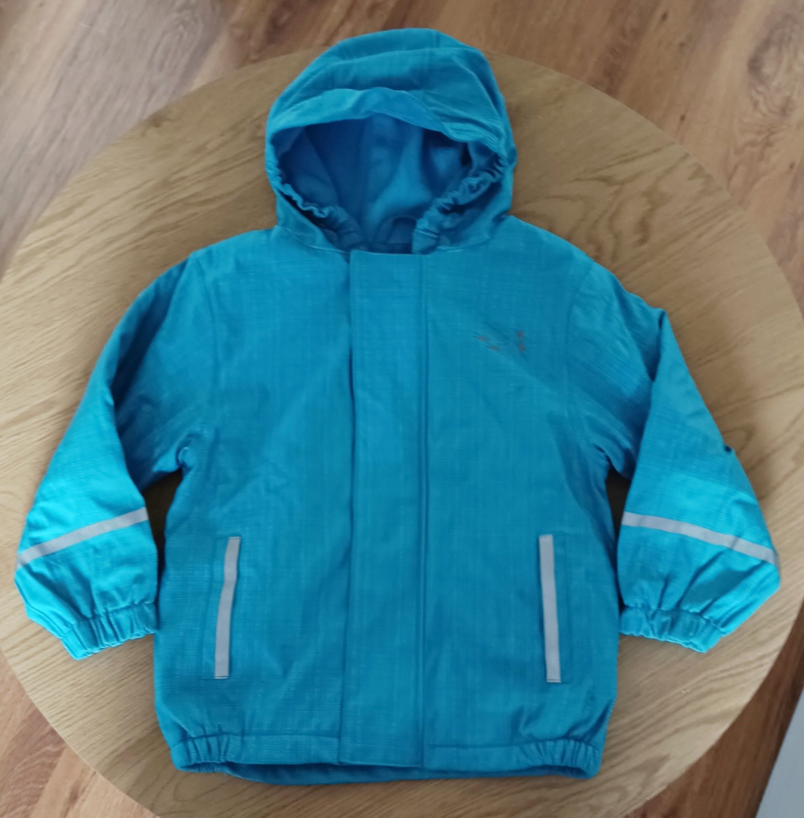 Nepremokavá bunda veľkosť 98-104. Reflexné prvky. Flísová podšívka. Veľmi dobrý stav.