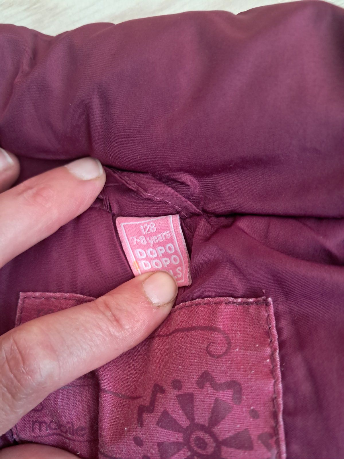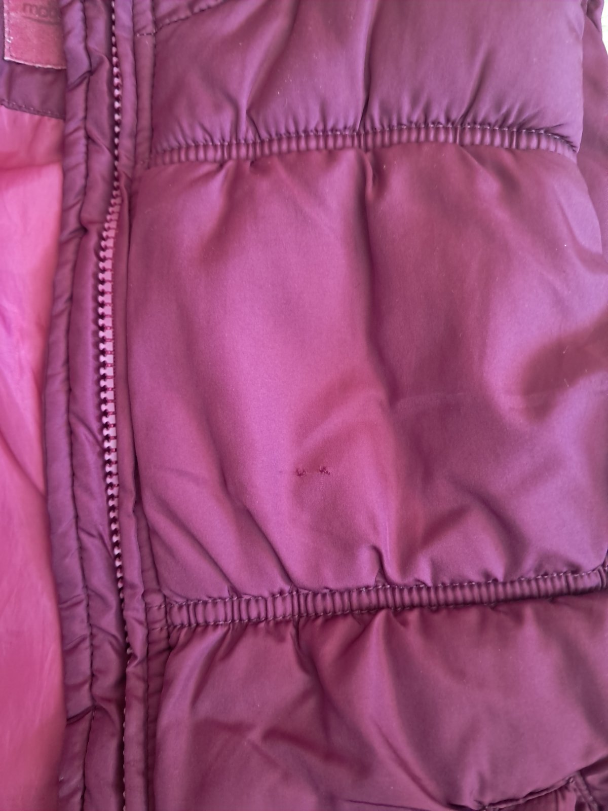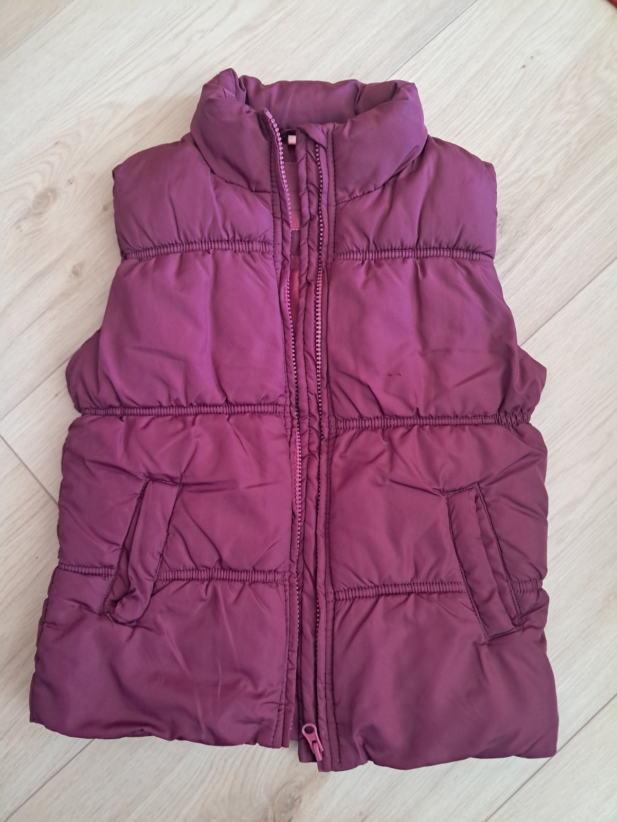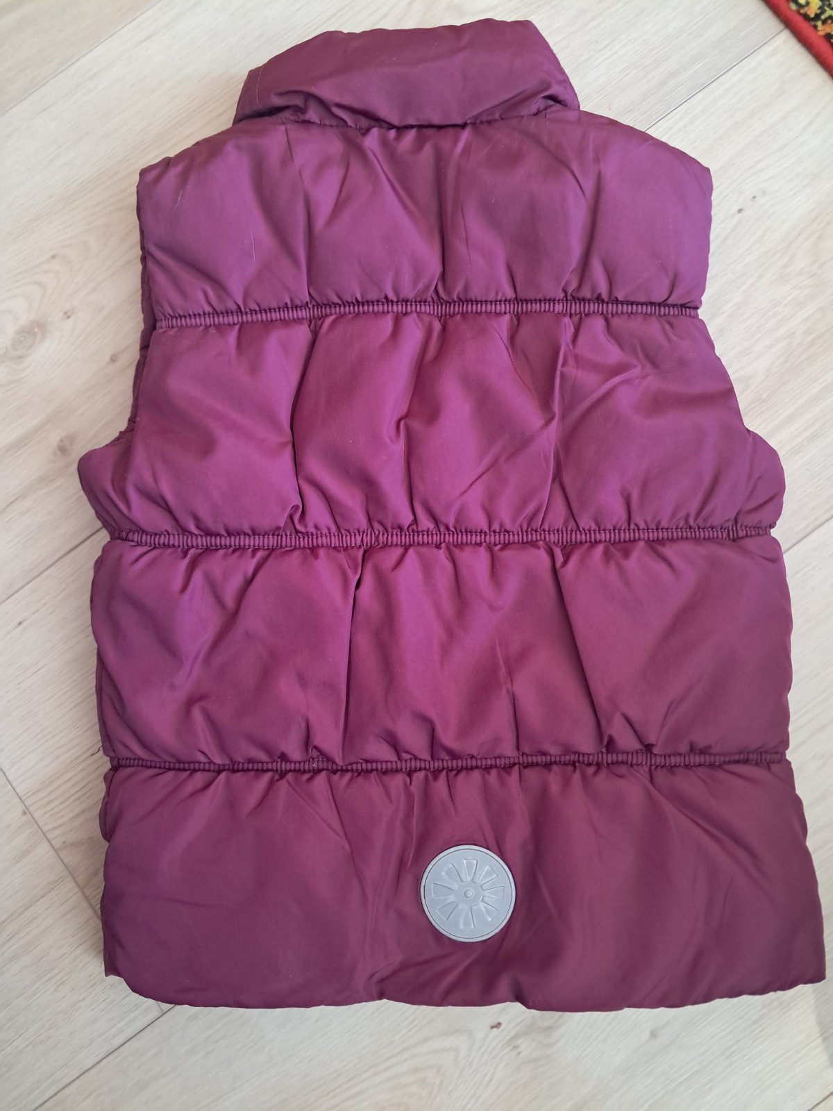 Posuvam nosenu vestu v.128, nasla som mini chybicku krasy, vid posledna fotka. Inak bez poskodeni, farba krasna tmava (bez svetlych miest)