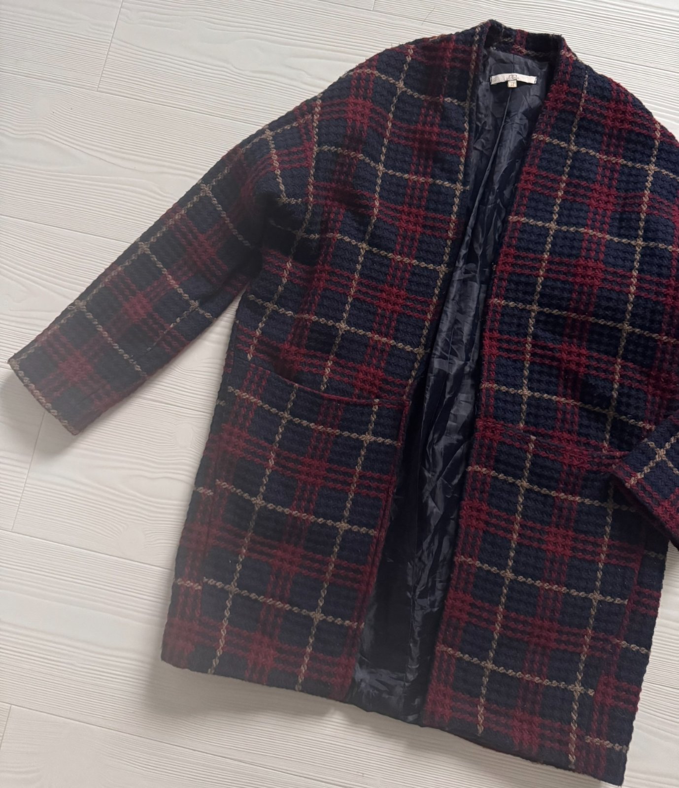 Podšitý prechodný káro blazer na veľkosť M.