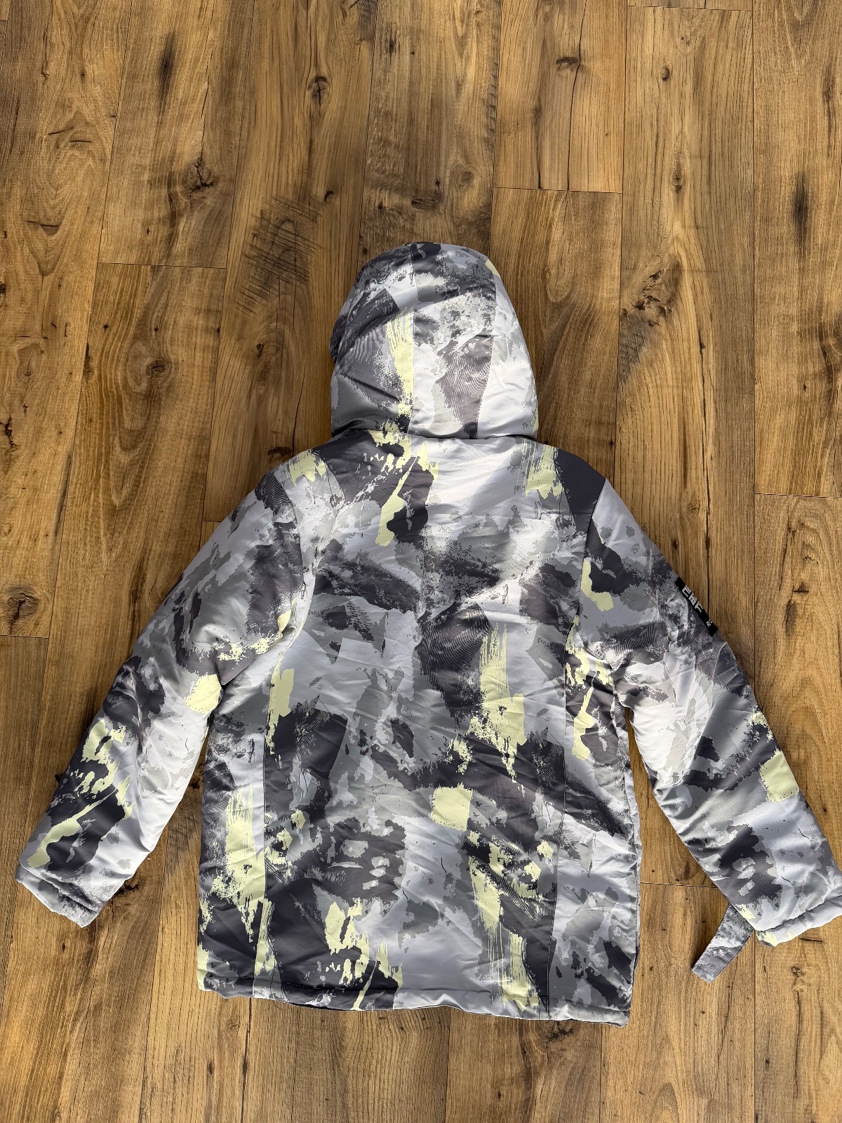 Zateplená bunda s kapucňou nepremokavá Reserved Veľkosť 146/152, 158/164, 170 Nízky stojačik Zapínanie na zips Dlhé raglánové rukávy Manžety a nohavice s elastickým lemom Dve vrecká na zips na pred...