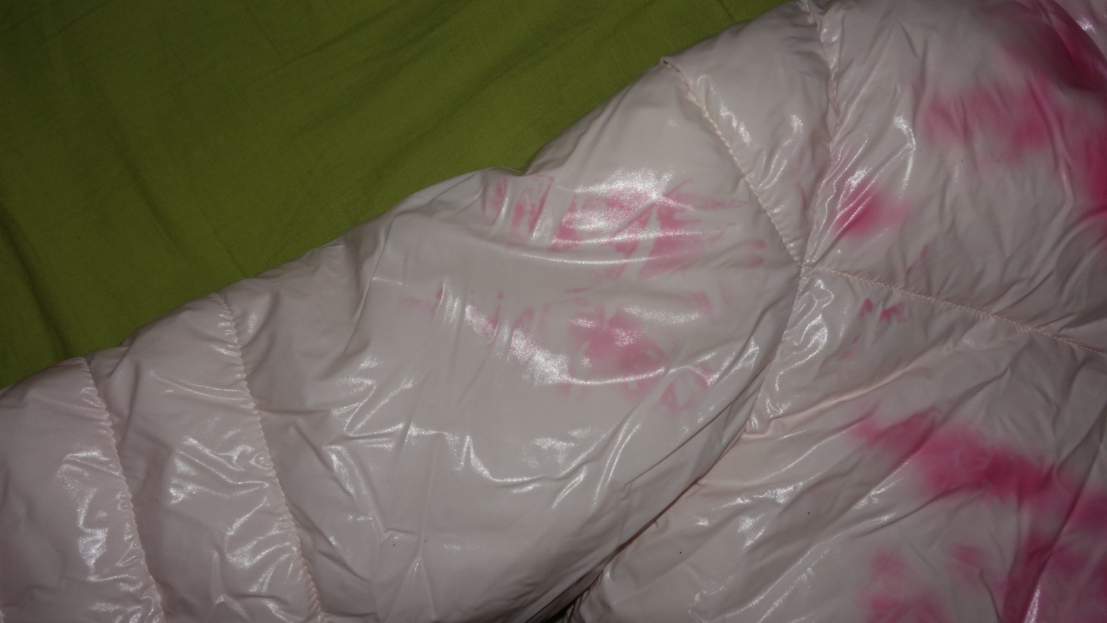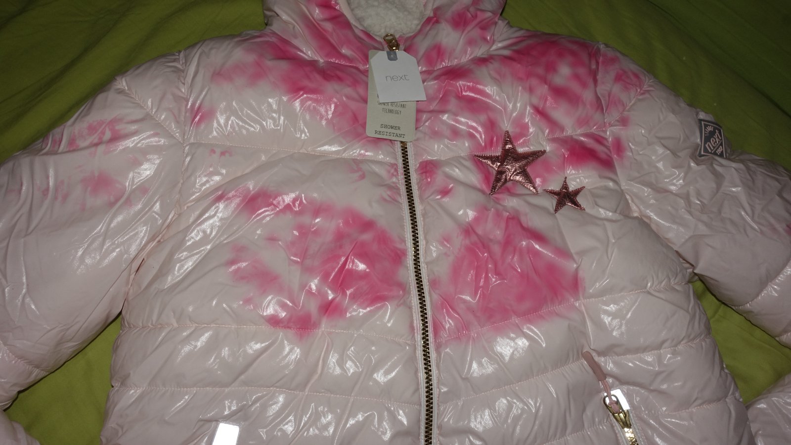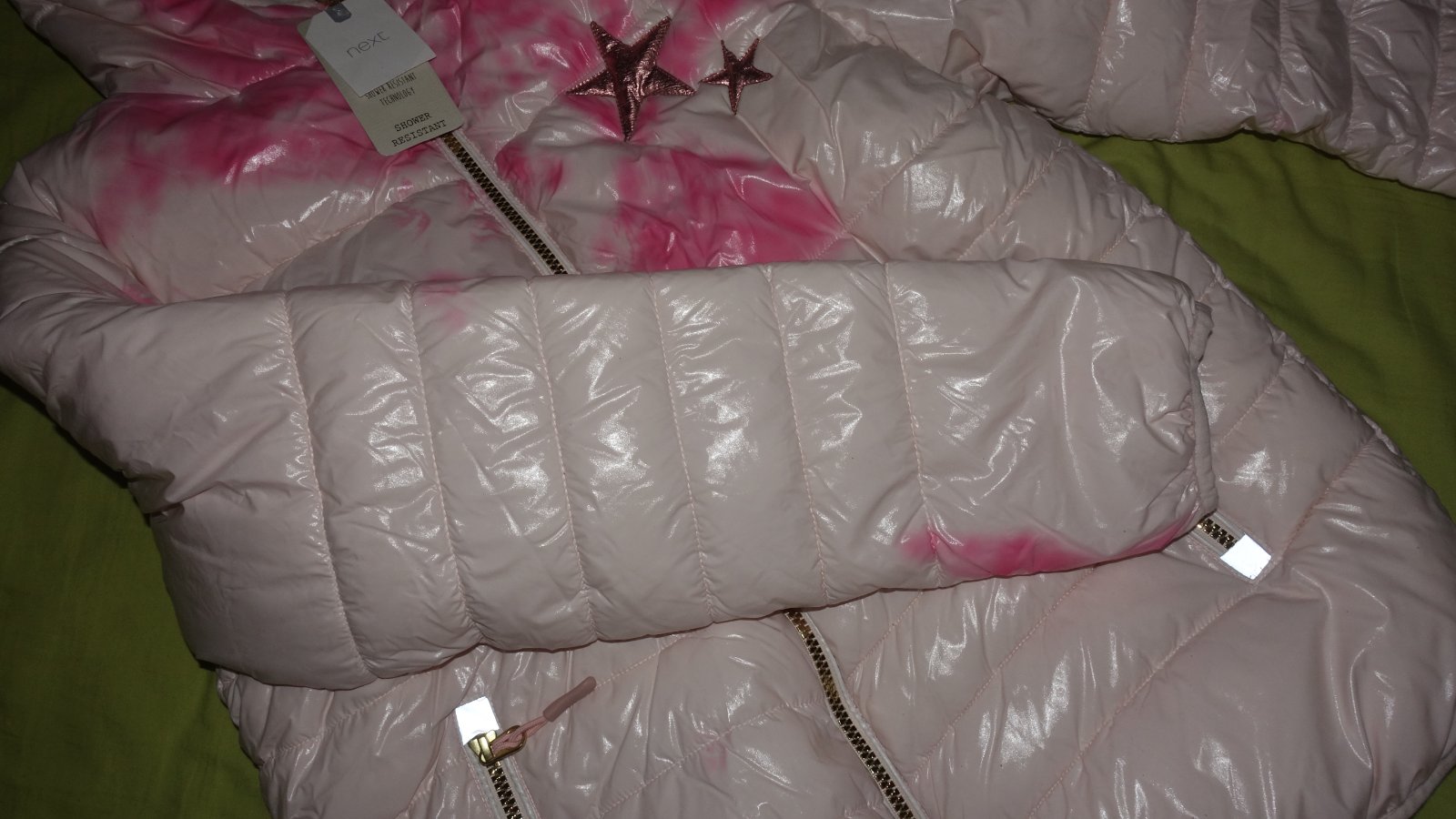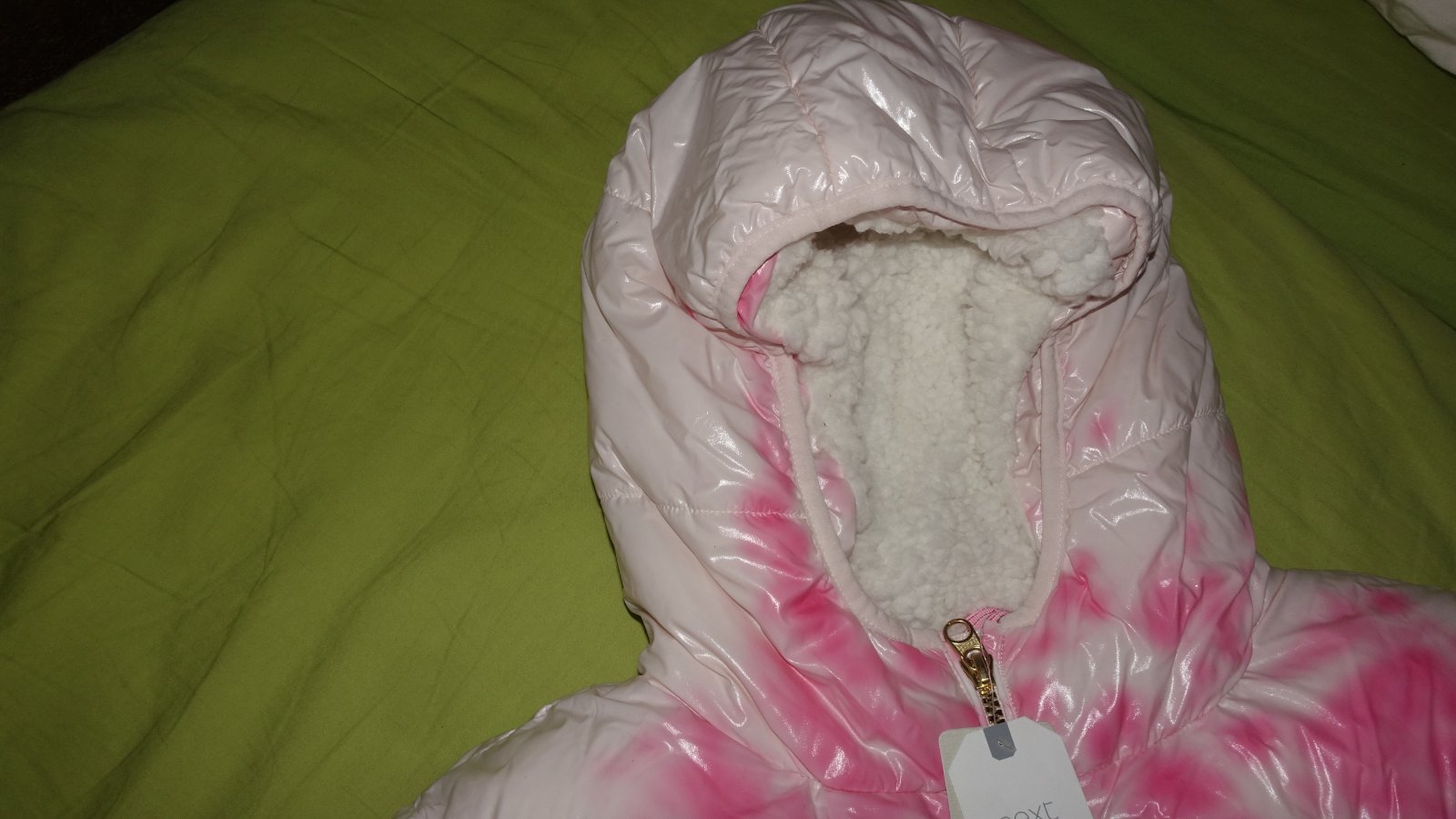 Krasna nepremokava bunda- nova, s visackami, avsak sa mi otlacila na nu farba z inej bordove bundy. Je podsita barancekom. Velksot je uvedena na 15rokov a vysku 166cm.