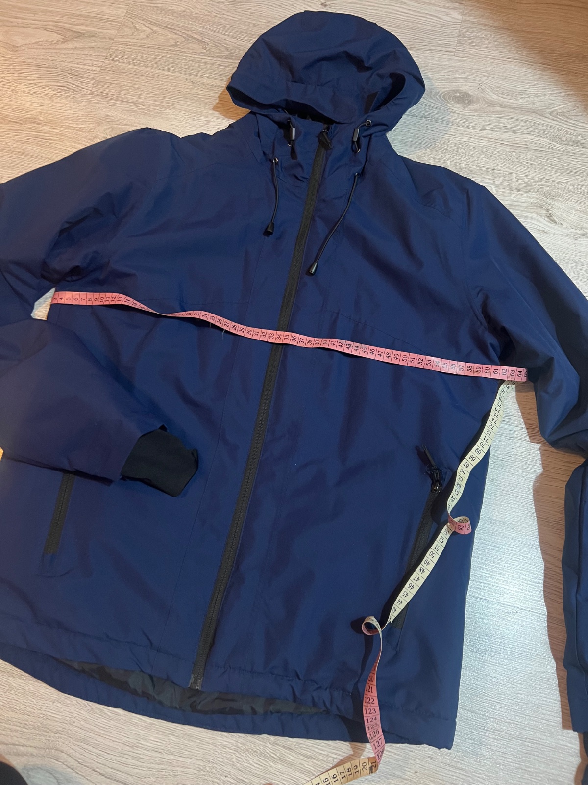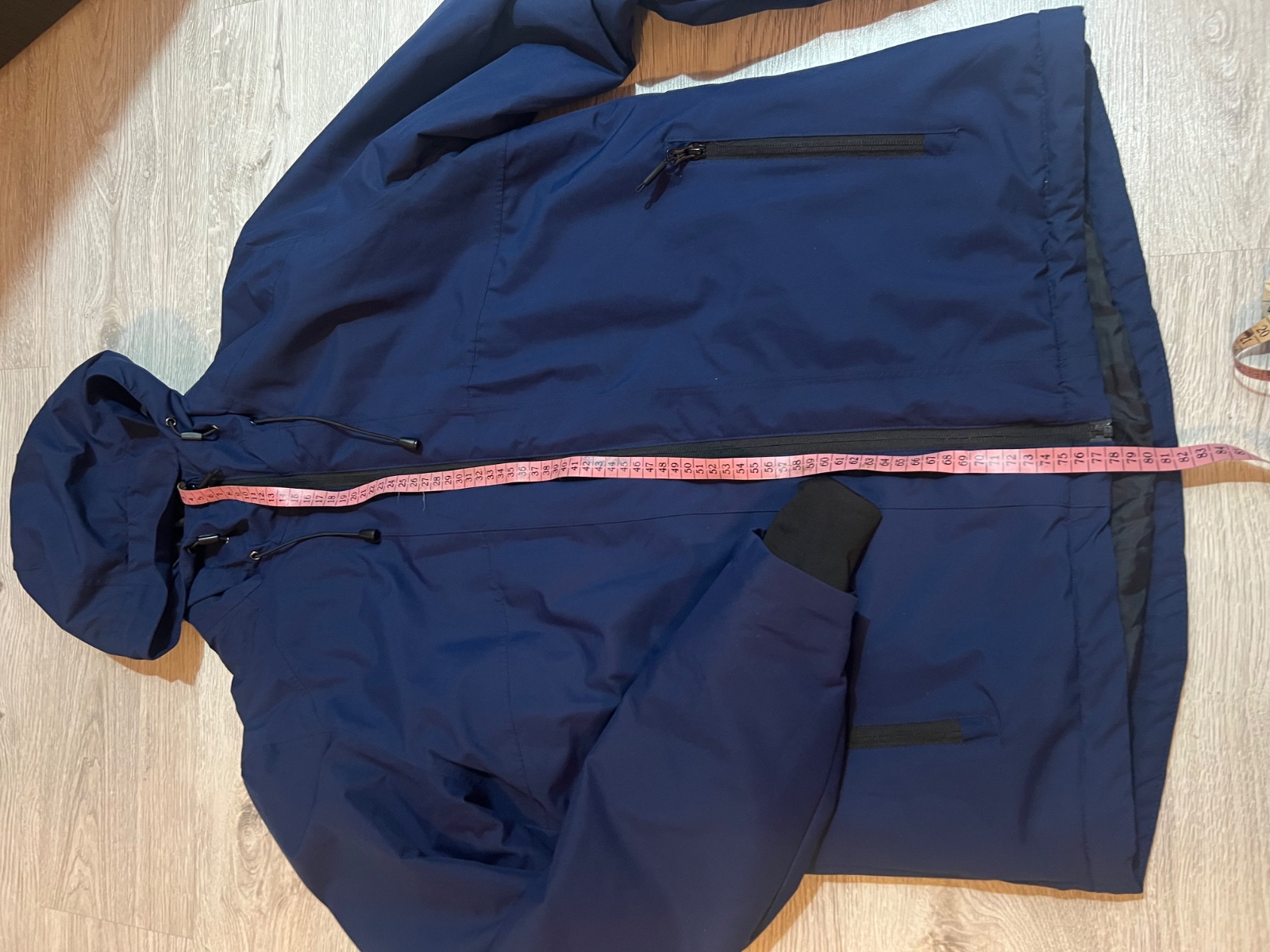 Nosená, predĺžená bunda, kapucňa sa neodnima, zapína sa skoro az pod krk, takze neprefúka, celkova dĺžka 80cm, šírka 57cm, dĺžka rukáva od krku 75cm, od pleca 65cm.. plus pošta