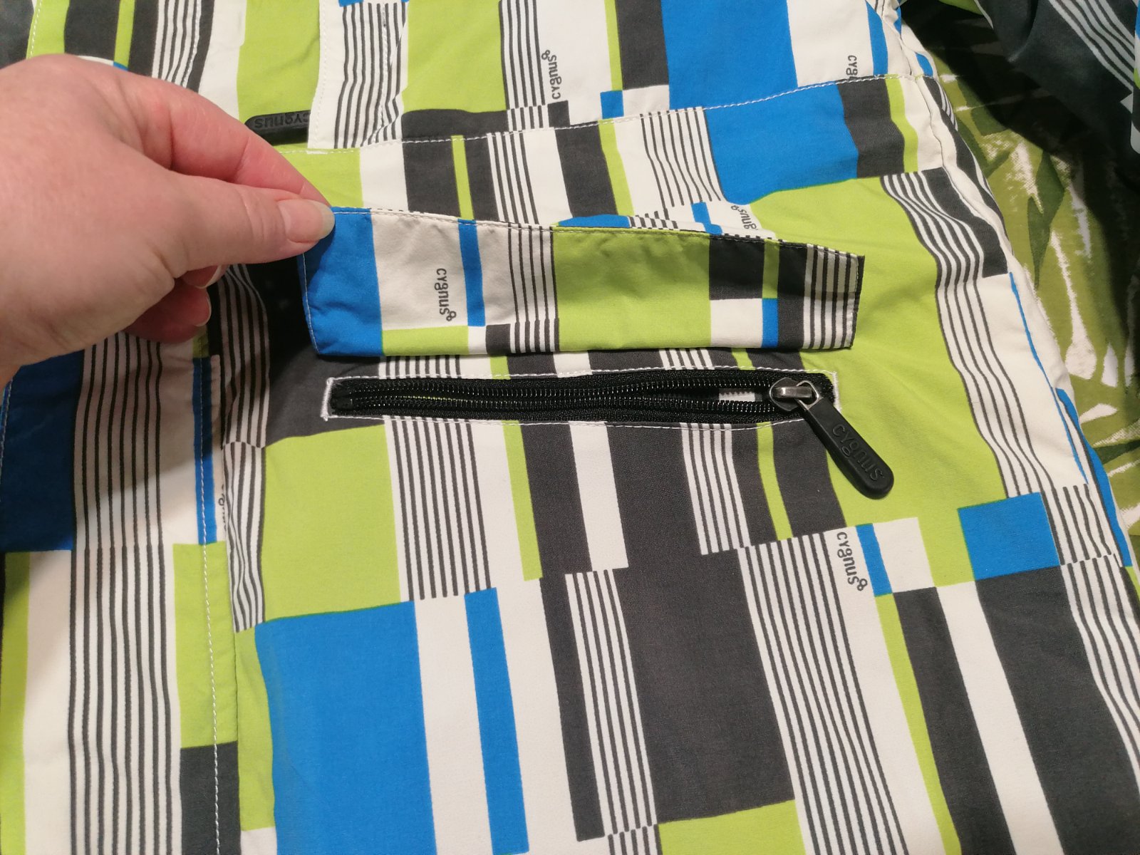 Krásna lyžiarska vetrovka zn. Cygnus, veľkosť uvedená S, ale sedí od 164. Má všetko, čo poriadna vetrovka má mať, viď foto. Krásna, bez poškodenia, grátis pridávam čiapku. Celková dĺžka od ramena dole je 66cm, šírka 2x56 cm. Kapucňa na pevnom, vrecká na zips, na rukáve tiež vrecko. Kapucňa regulovateľná, zvnútra bundy snežný pás atď...