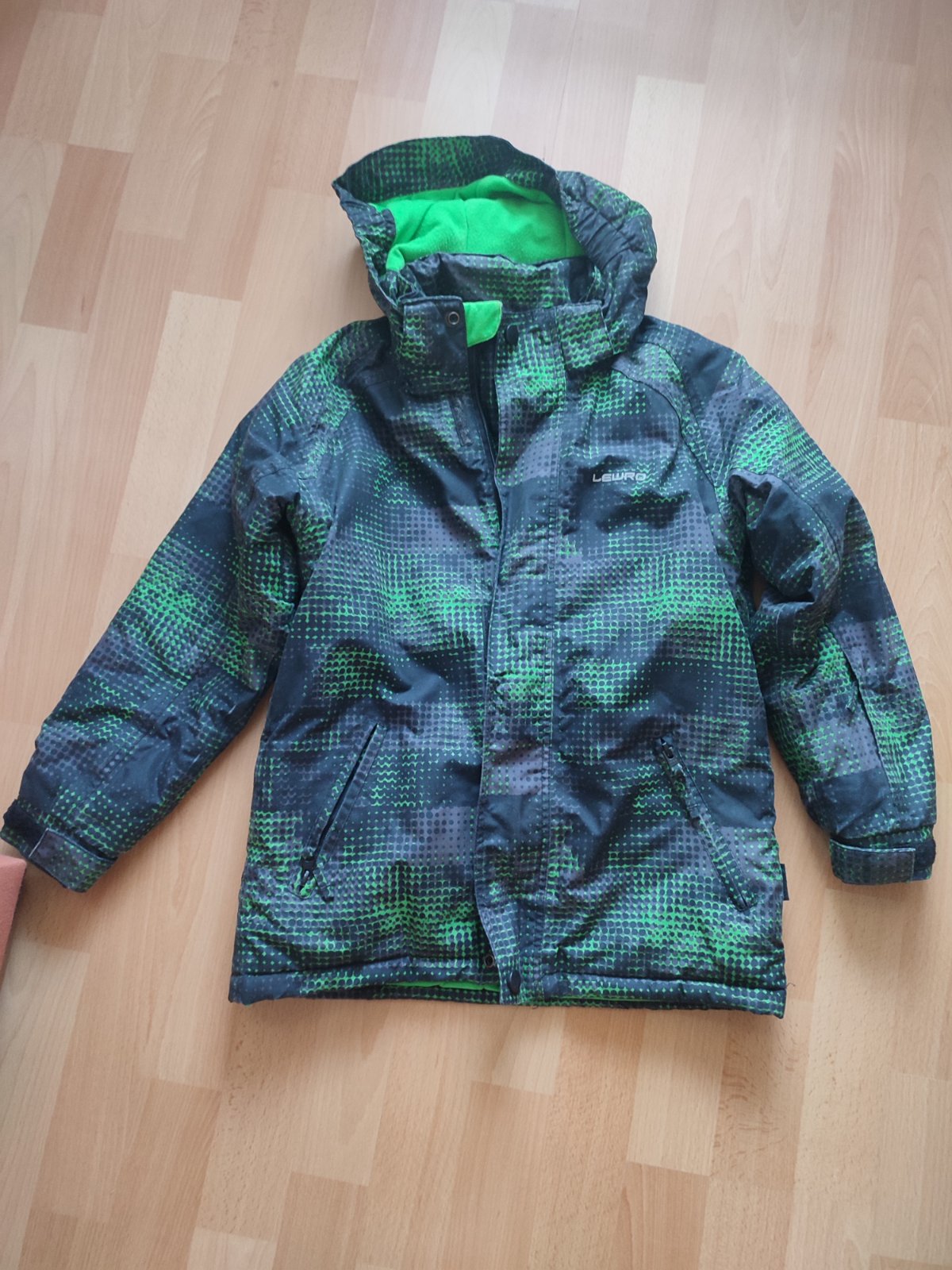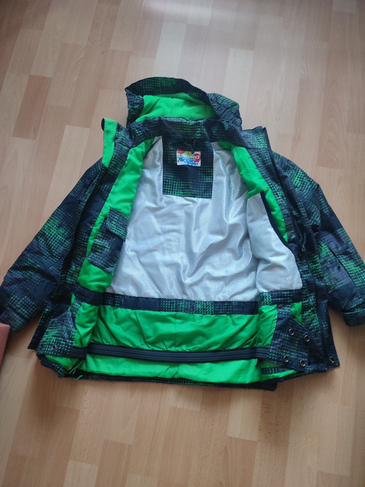 Bunda je vo výbornom stave, jediný nedostatok je v spodnom vnútornom vrecku, je prasknuté. Viď foto. Velkosť písaná 128/134.