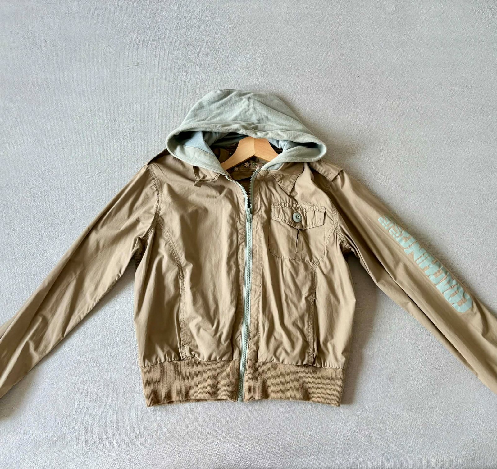 Béžová bunda s kapucňou
