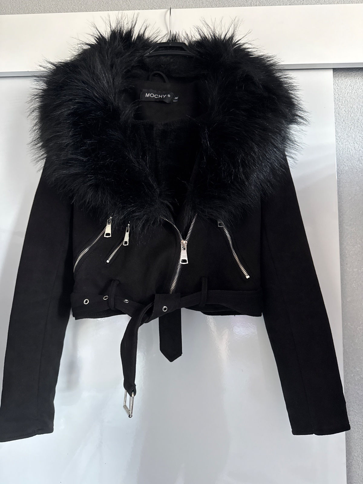 Krasna semišova bundicka top stav s kožušinou zateplená veľkosť S podľa mňa aj XS