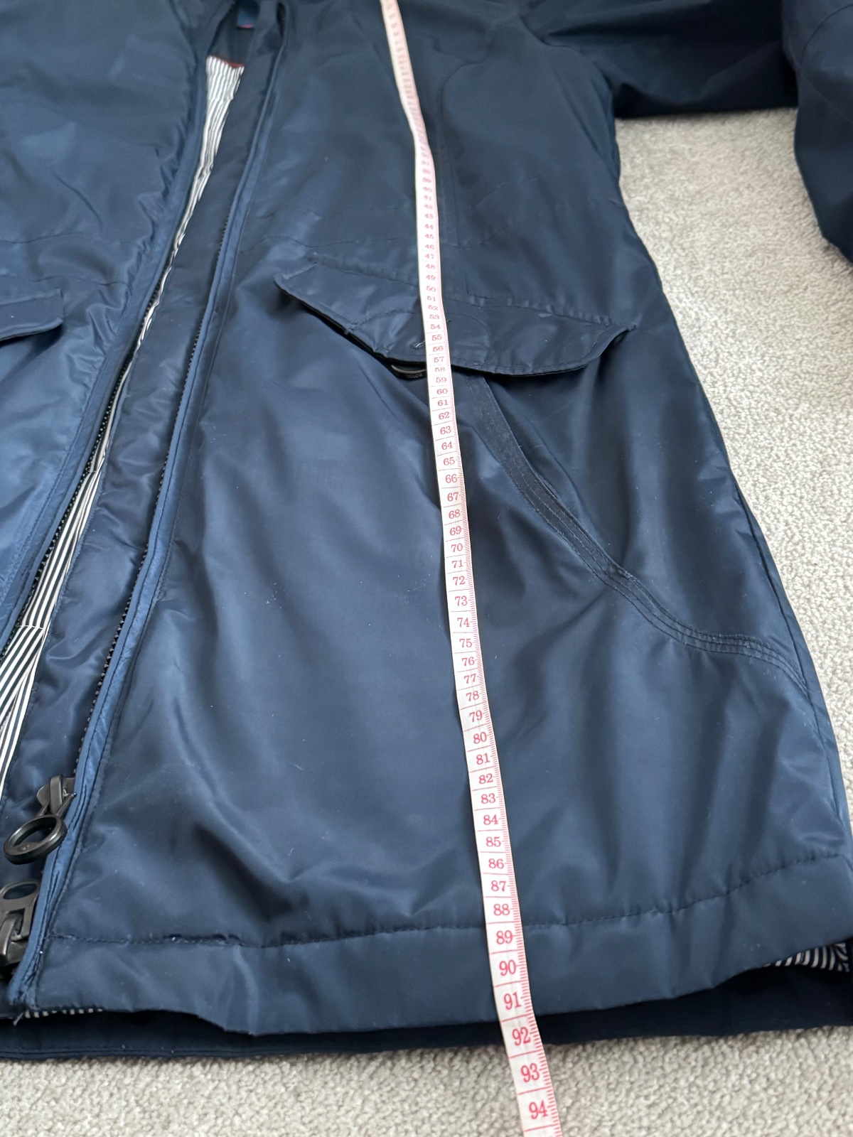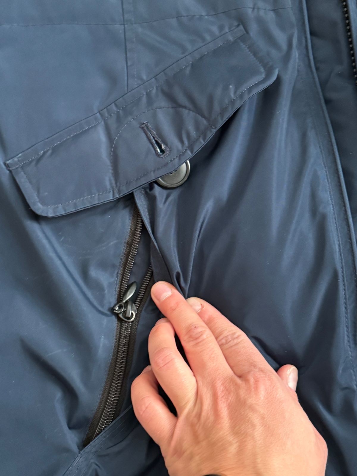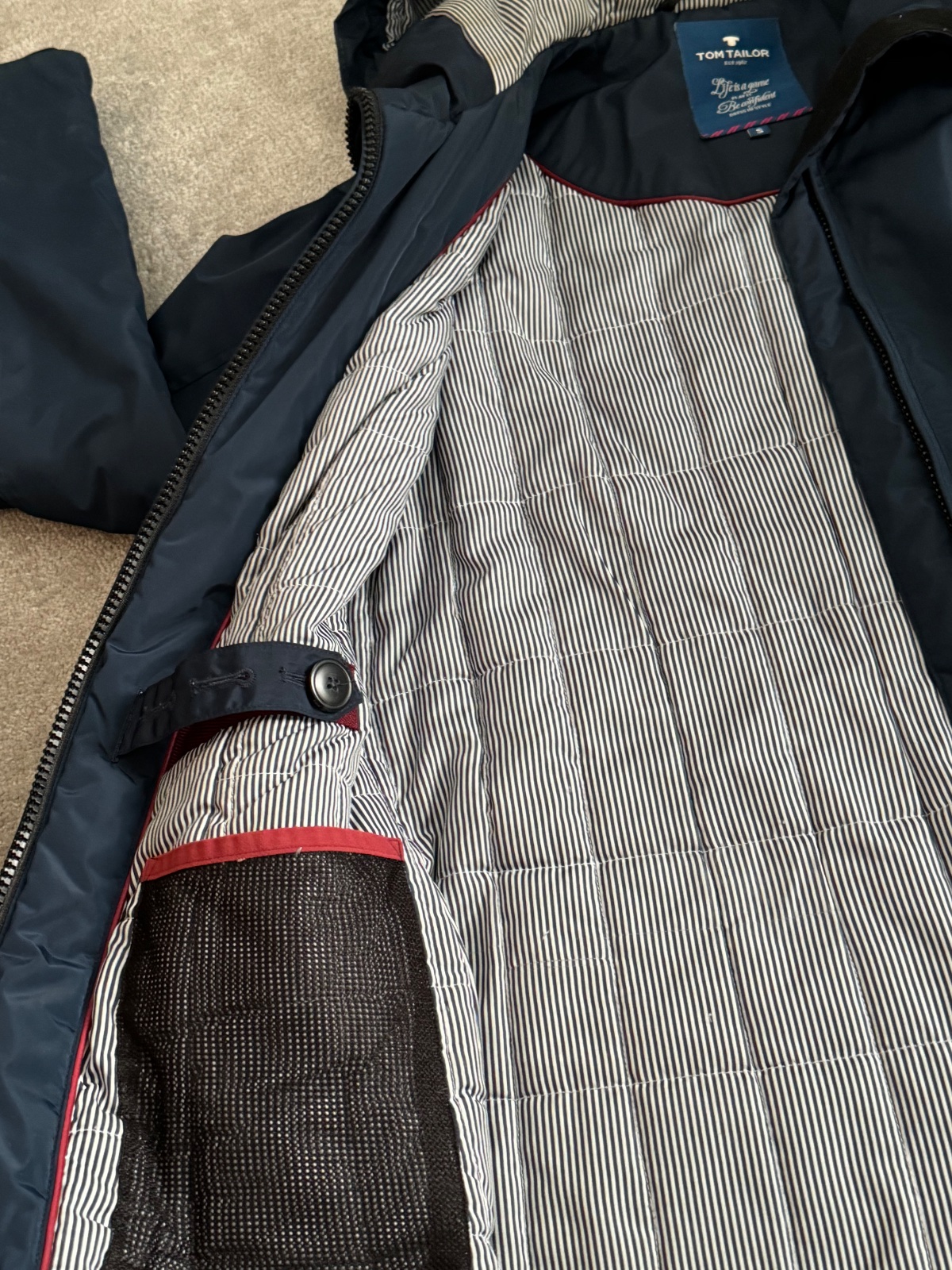 Teplá tmavomodrá bunda v námorníckom vzhľade. Prepracované vrecká aj kapucňa. Je vo výbornom stave. Stačí ju dať do čistiarne, okolo brady stopy od makeupu, inak top stav.