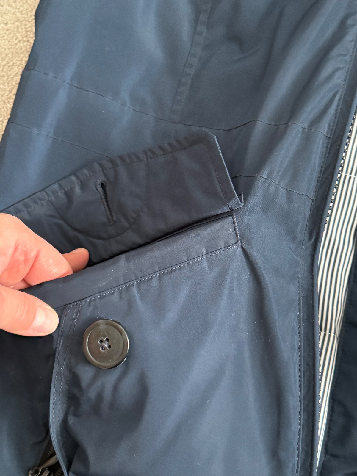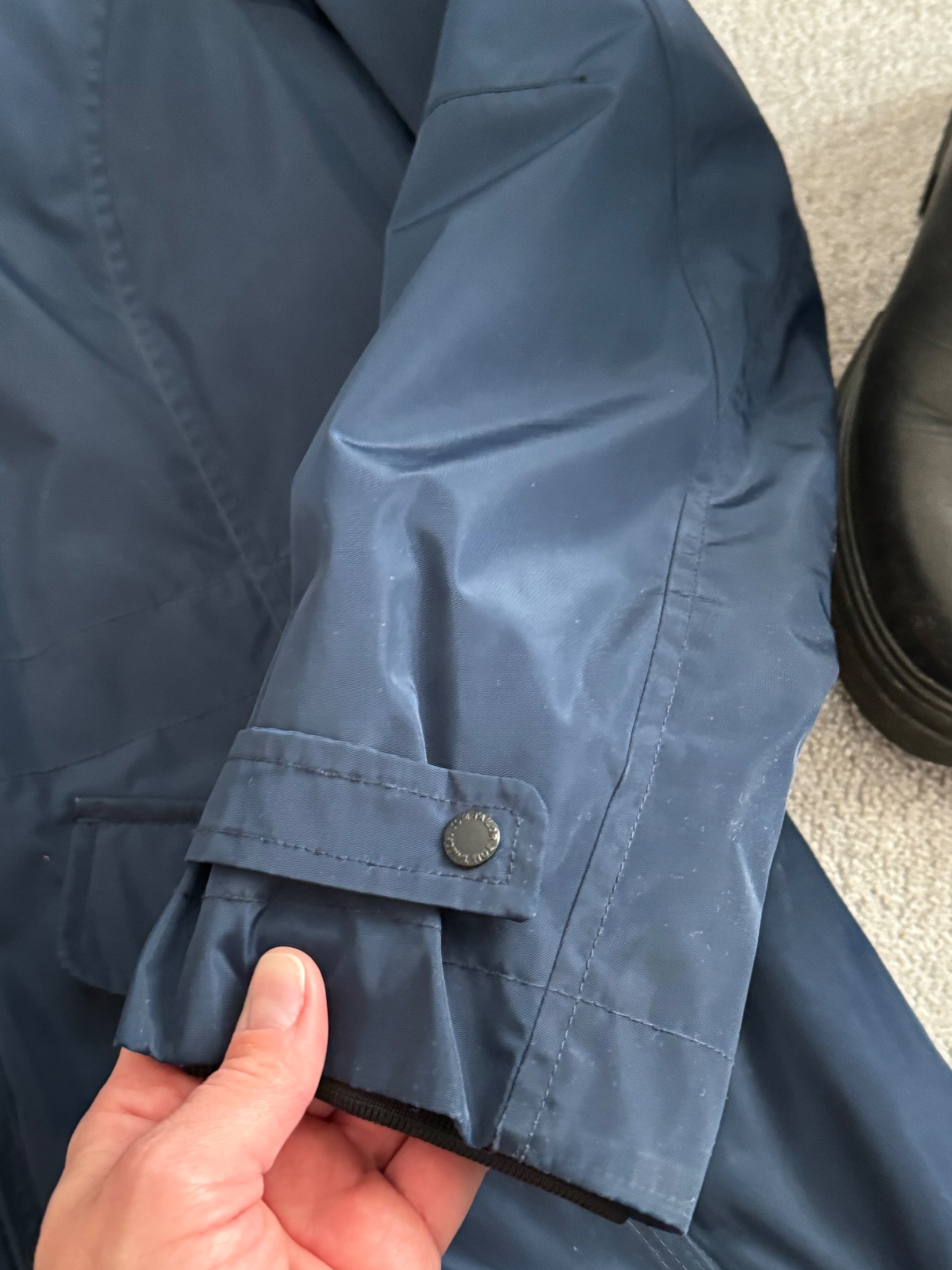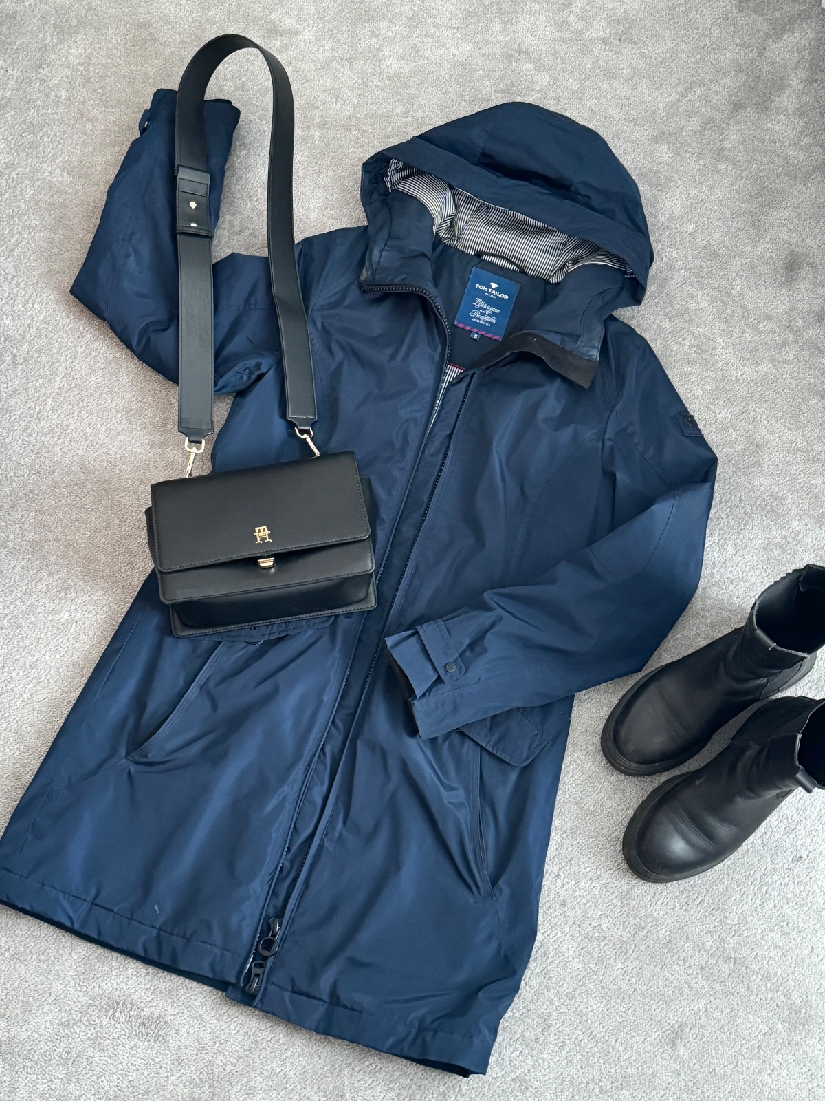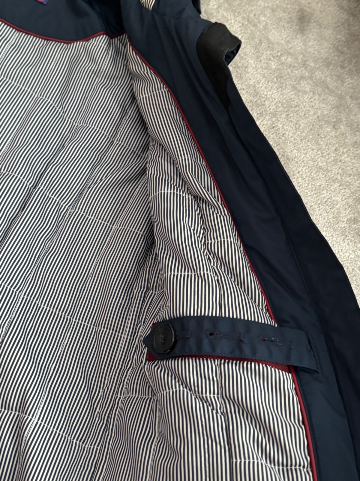 Teplá tmavomodrá bunda v námorníckom vzhľade. Prepracované vrecká aj kapucňa. Je vo výbornom stave. Stačí ju dať do čistiarne, okolo brady stopy od makeupu, inak top stav.