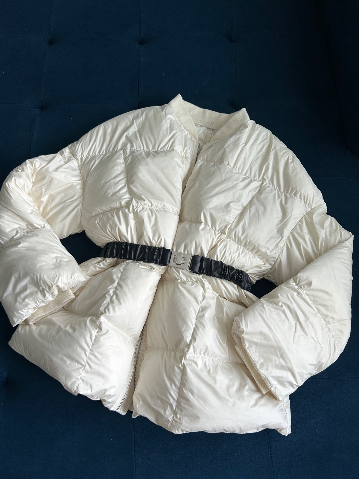Predám krásnu novú nadýchanú bundičku plnenú perím . Velkosť UNI, v cene aj opasok