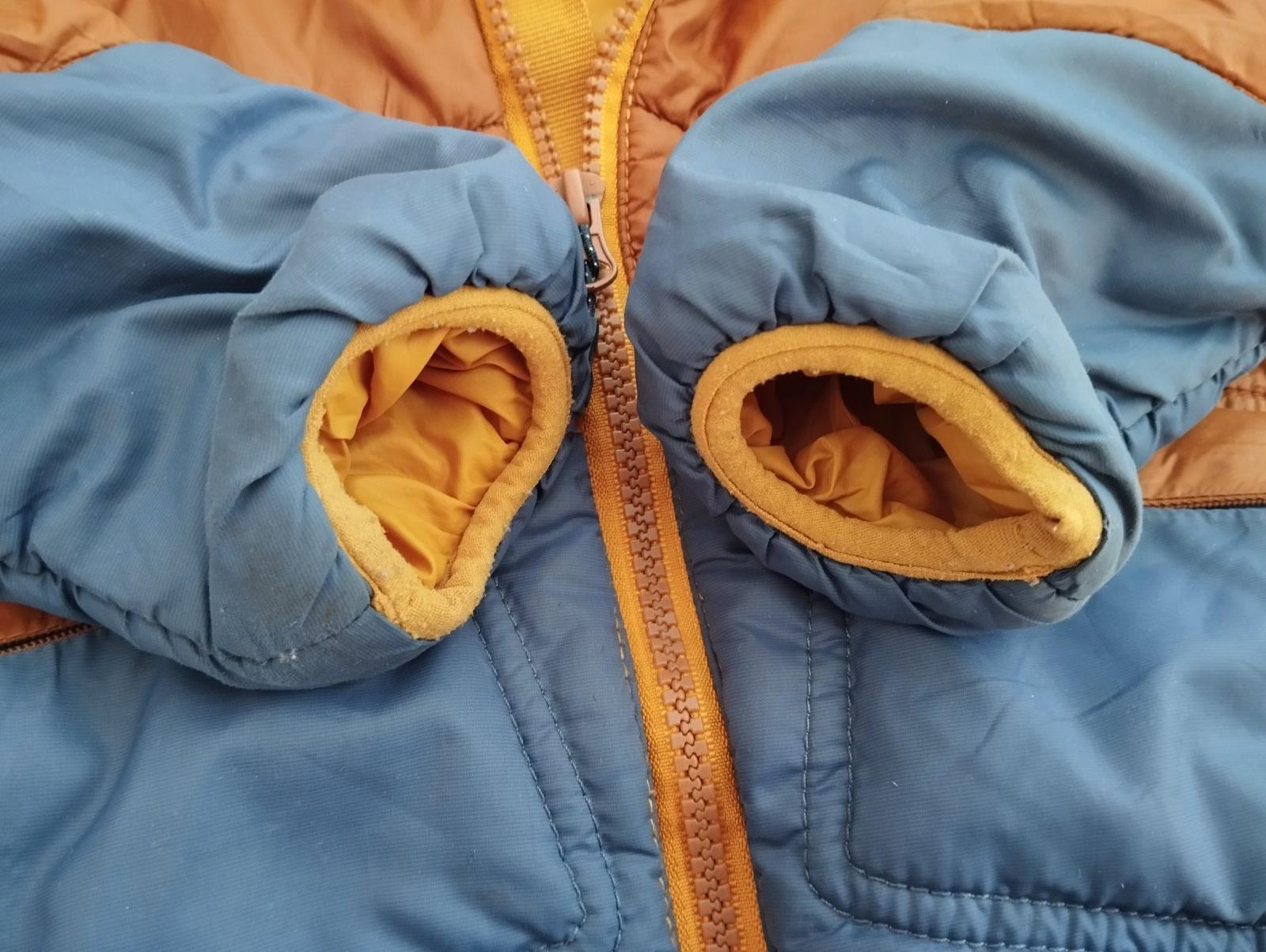Veľmi zachovalý stav, bez poškodenia a fľakov, obojstranná, na výšku 105 - 114, na 5 rokov, vodu odpudivá, kapucňa sa nedá odopnúť.