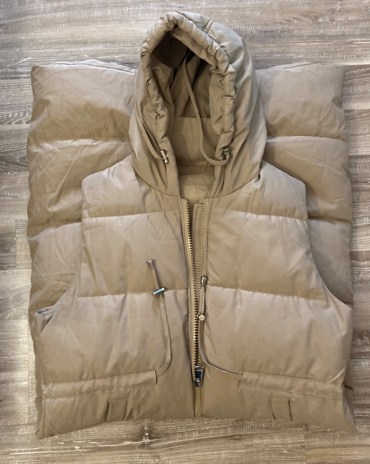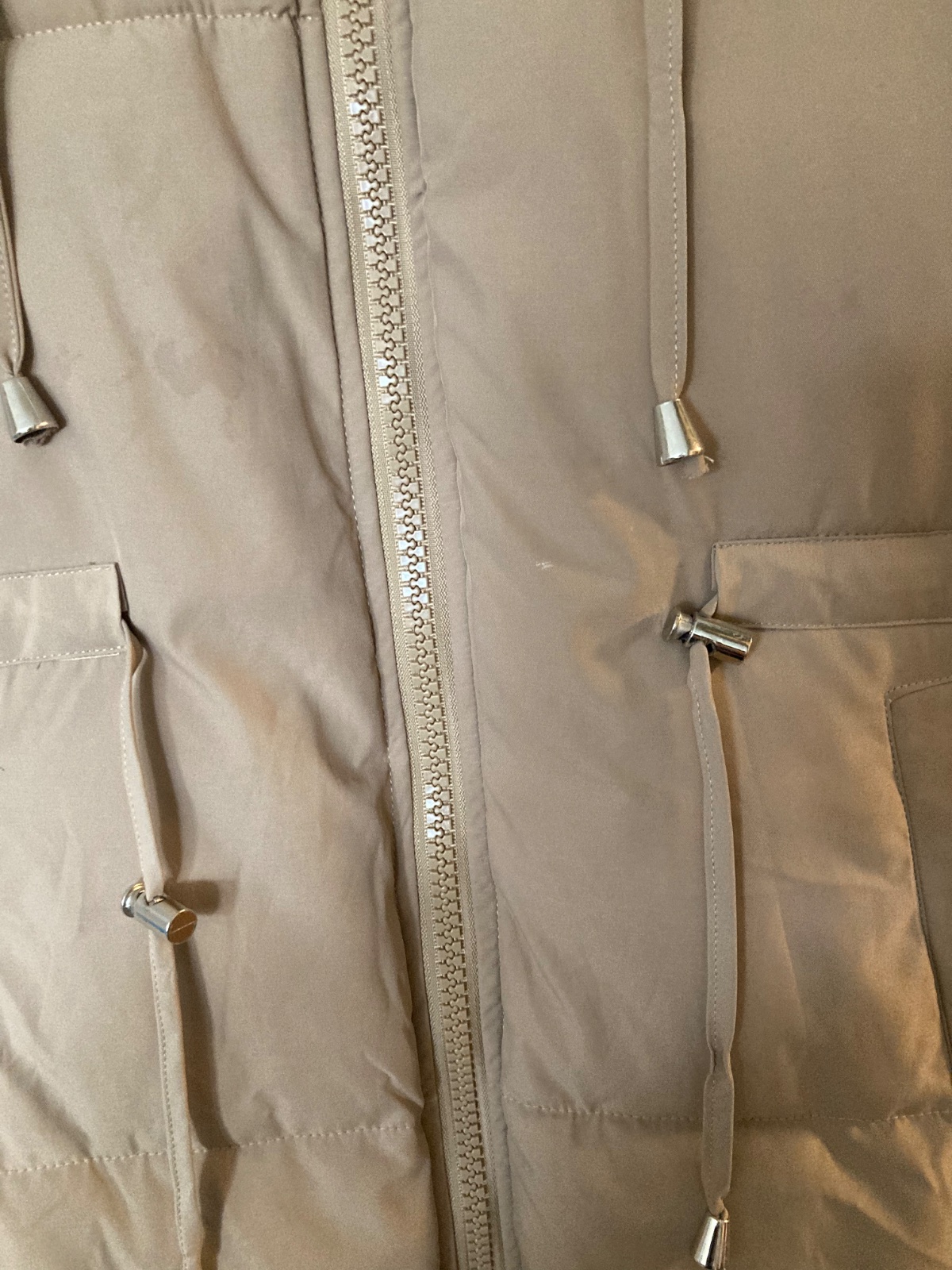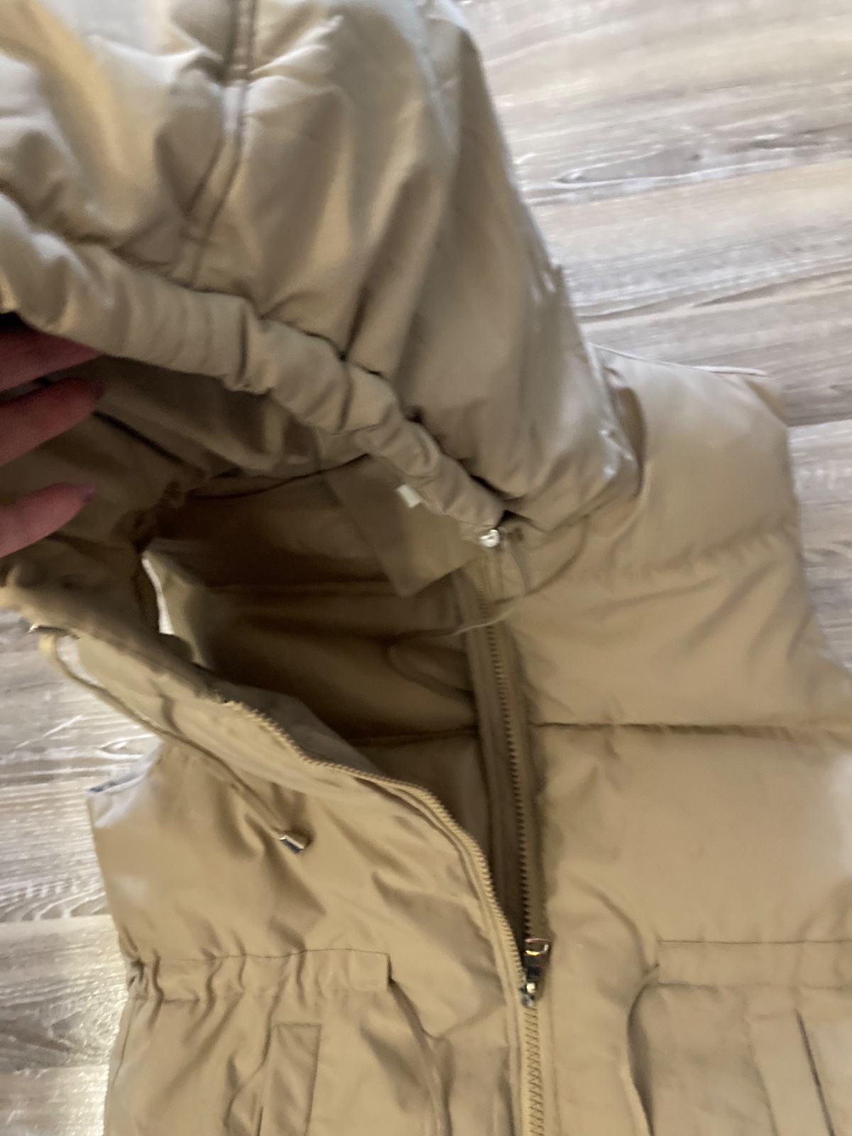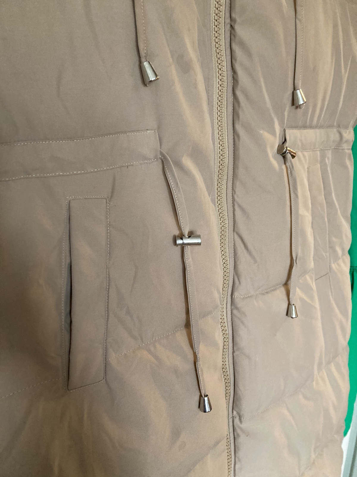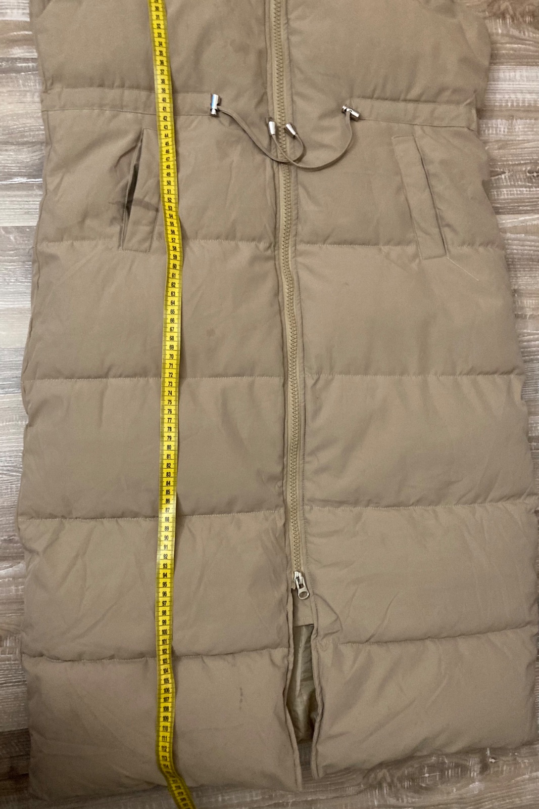 Vzatá dva krát..a nenosím ju.stojí mi v skrini.nebola ešte ani pratá,je tam nejaký fľiačik(pekne vidieť na foto kde)treba si oprať!vesta je dlhá,hrubšia páperová..farba krásna nieco medzi bledohnedá-béžová..v páse sa dá stiahnuť,..predám za 30€plus pošta.