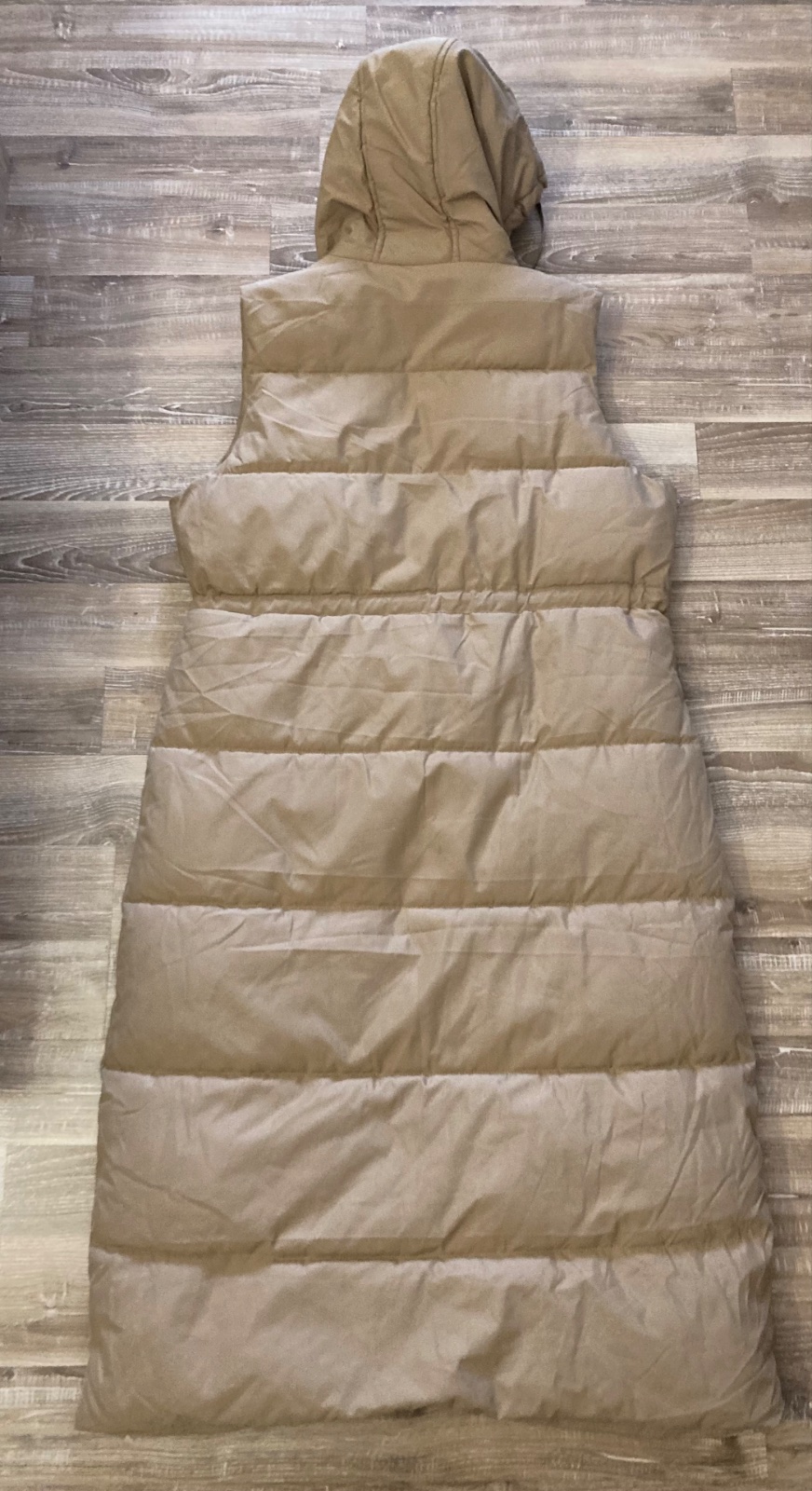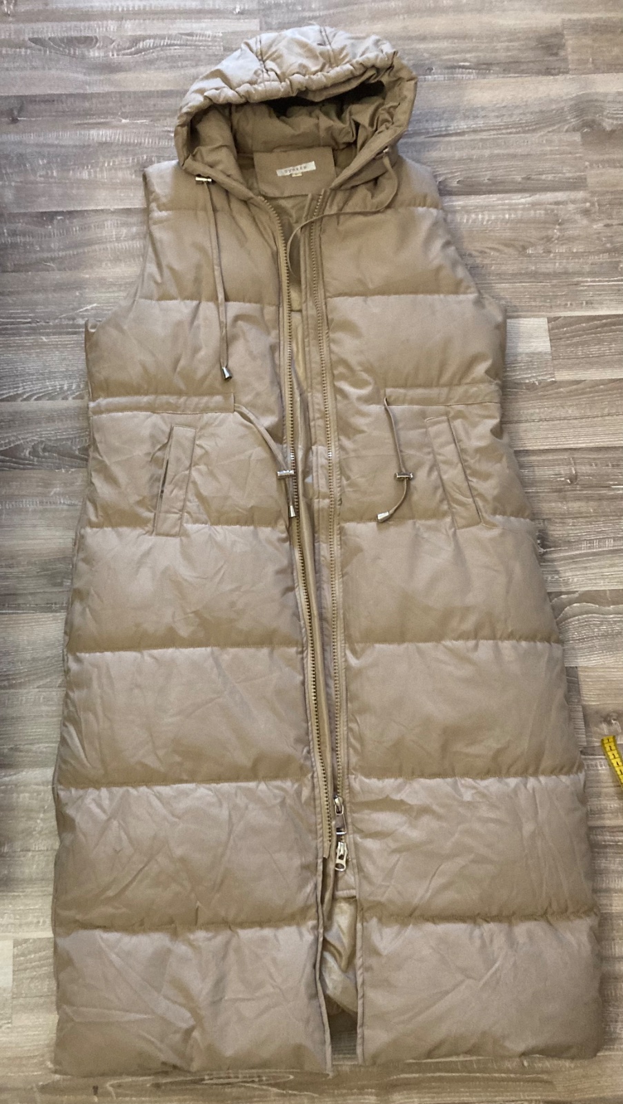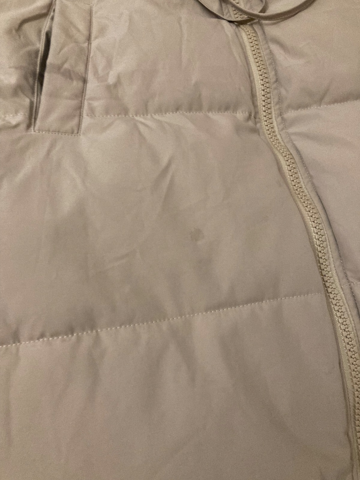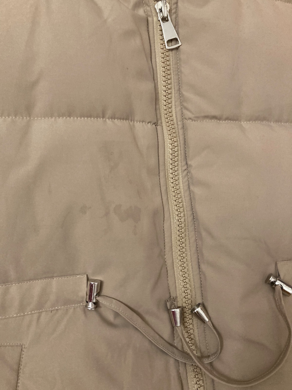 Vzatá dva krát..a nenosím ju.stojí mi v skrini.nebola ešte ani pratá,je tam nejaký fľiačik(pekne vidieť na foto kde)treba si oprať!vesta je dlhá,hrubšia páperová..farba krásna nieco medzi bledohnedá-béžová..v páse sa dá stiahnuť,..predám za 30€plus pošta.