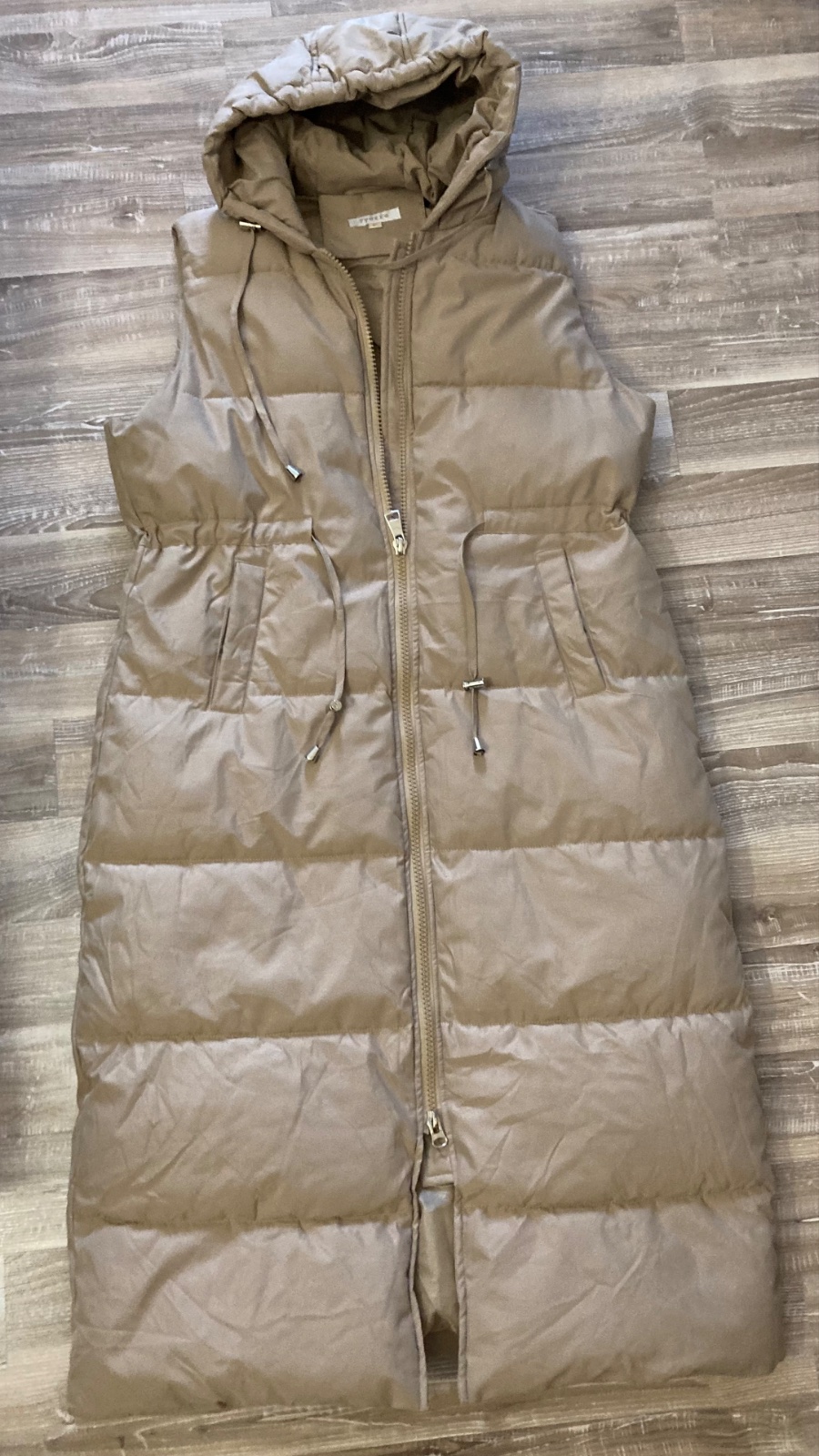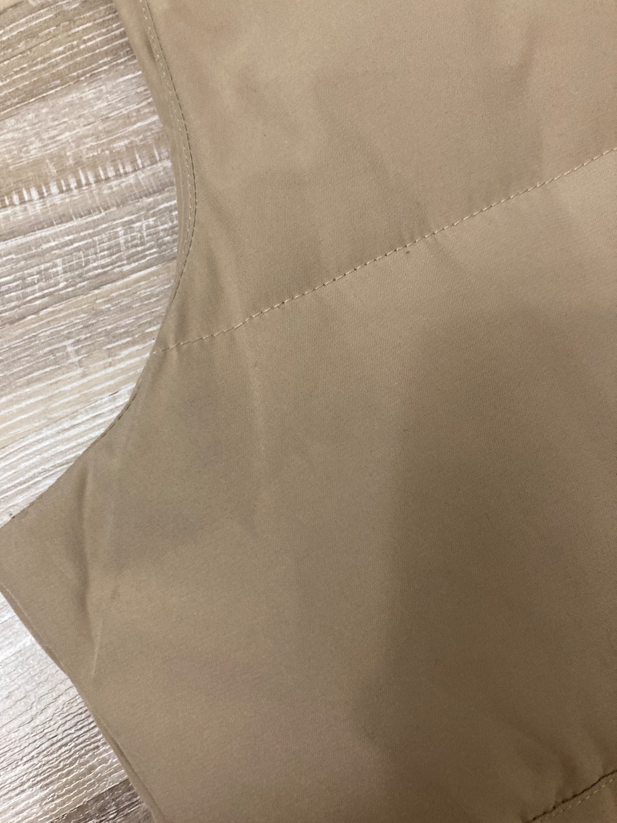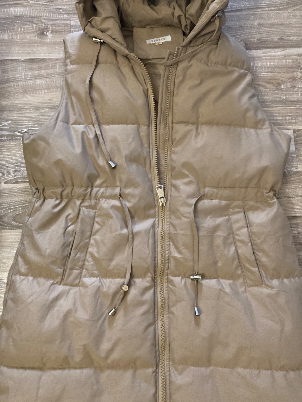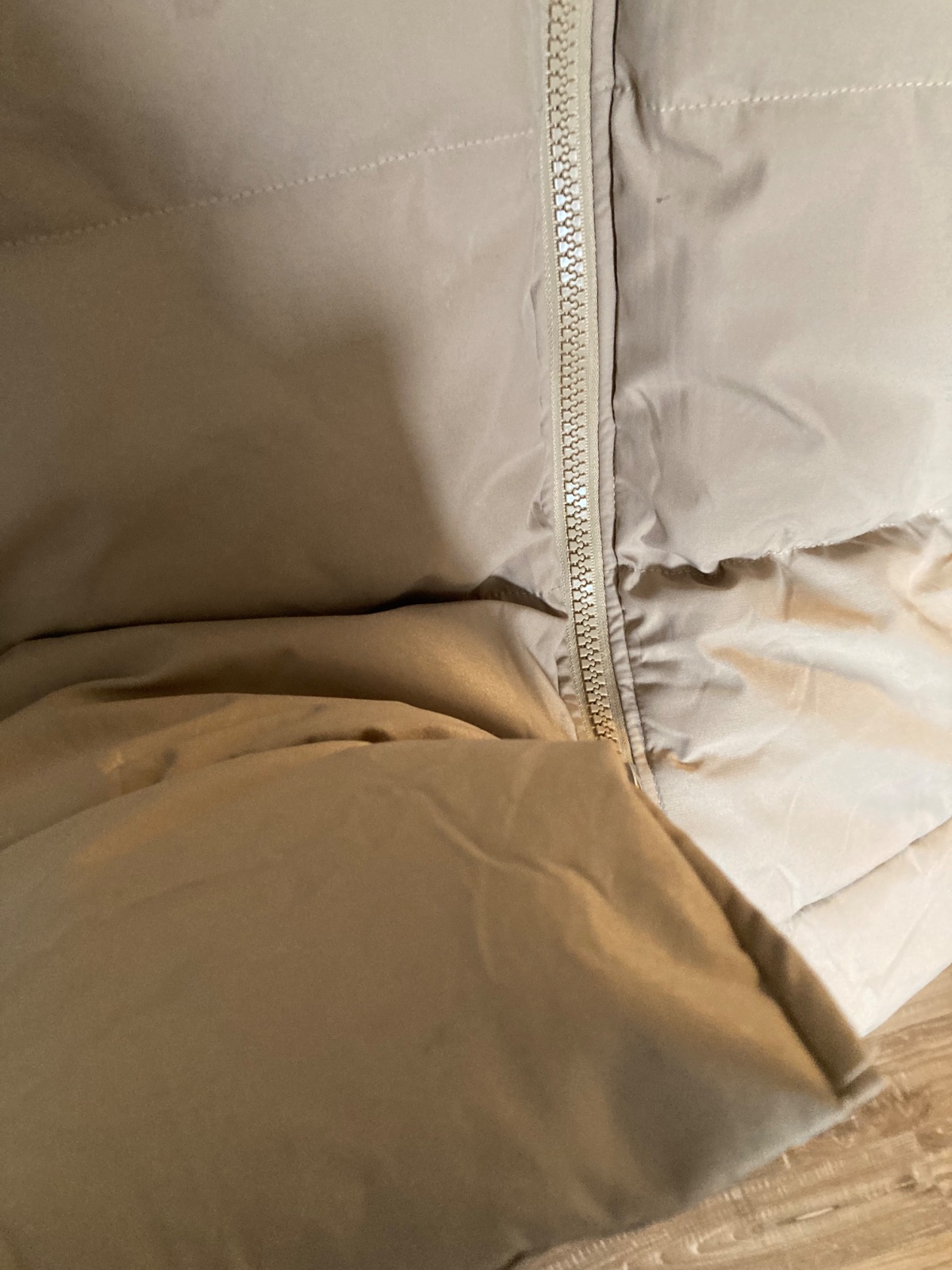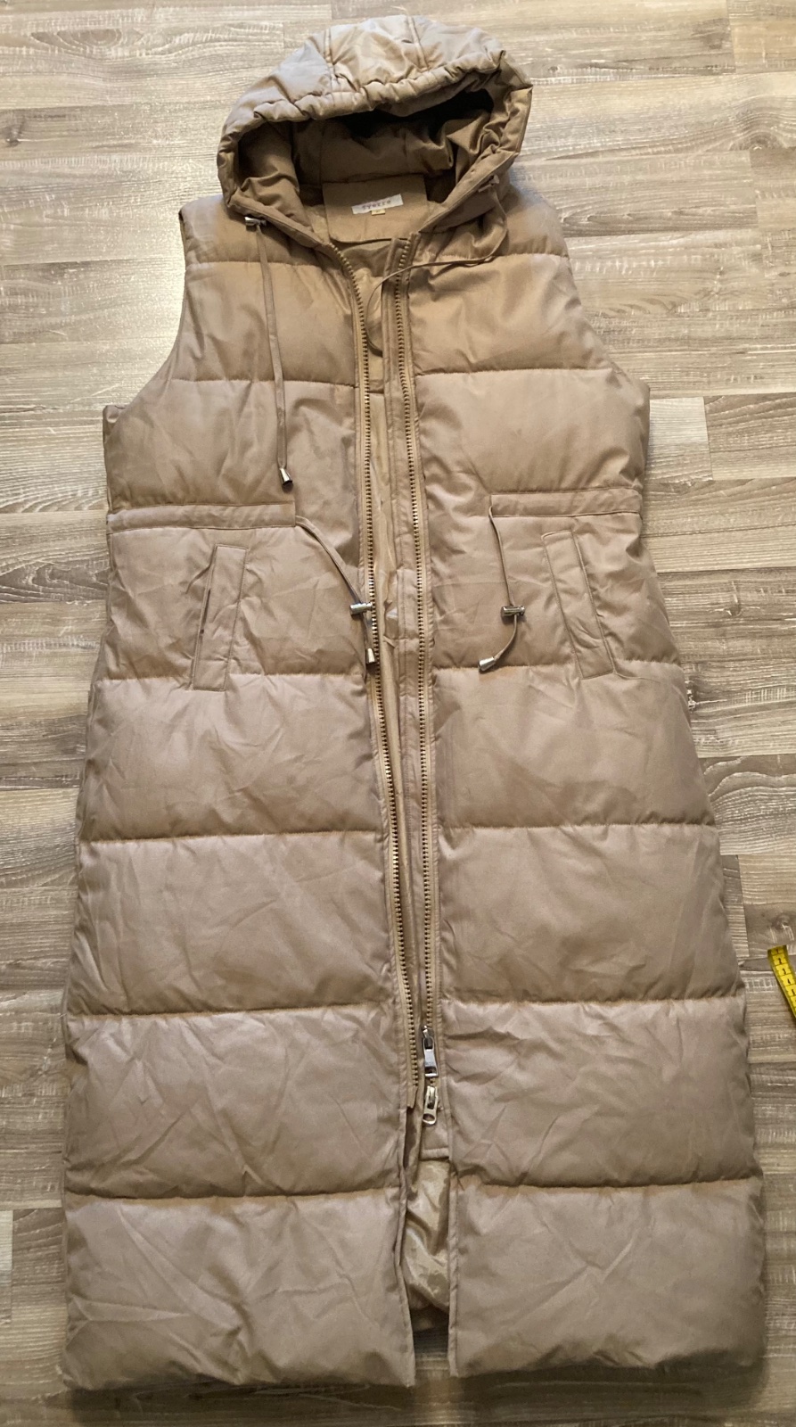 Vzatá dva krát..a nenosím ju.stojí mi v skrini.nebola ešte ani pratá,je tam nejaký fľiačik(pekne vidieť na foto kde)treba si oprať!vesta je dlhá,hrubšia páperová..farba krásna nieco medzi bledohnedá-béžová..v páse sa dá stiahnuť,..predám za 30€plus pošta.