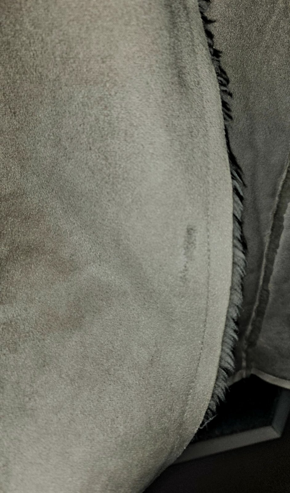 Na dvoch miestach slabe fliaciky-skoro nevidiet- odfotene na detailnei fotke-mozno sa to niekomu podari vycistit, ja som neskusala