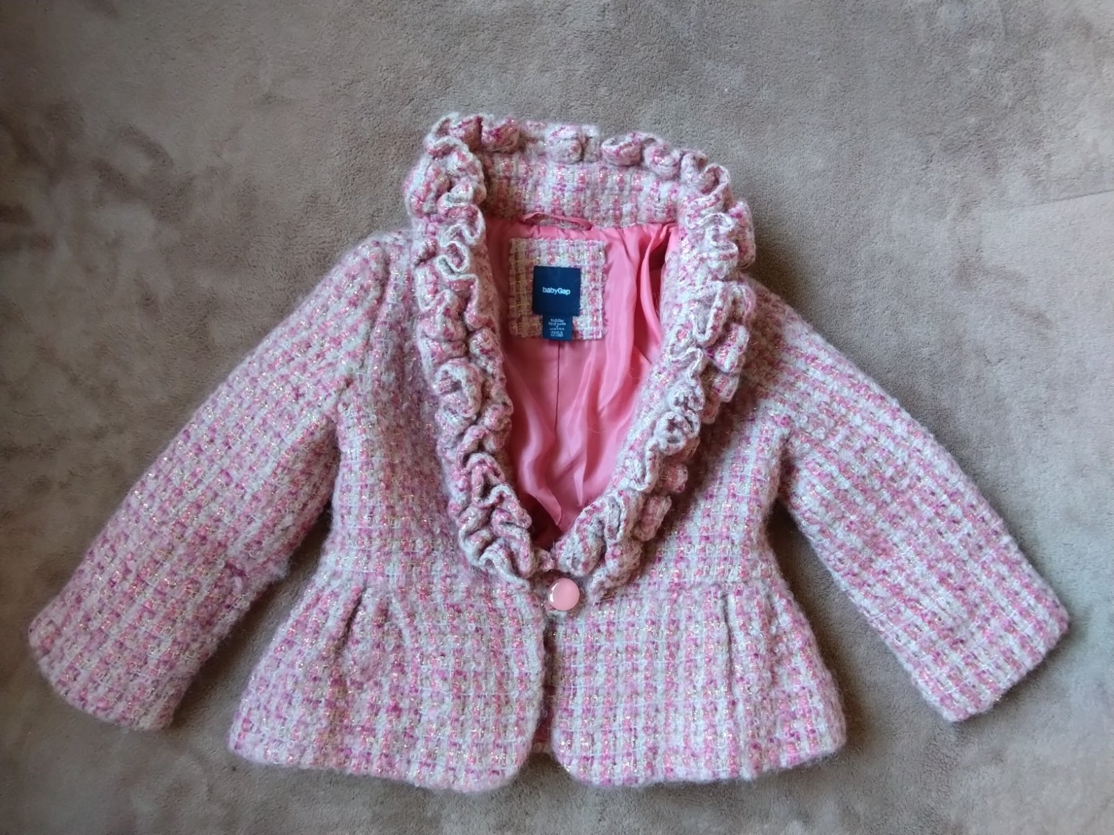 V dobrom zachovalom stave, dĺžka od ramena 31cm, dĺžka rukáva od ramena 28cm,tkanina je pretkavaná zlatou niťou.