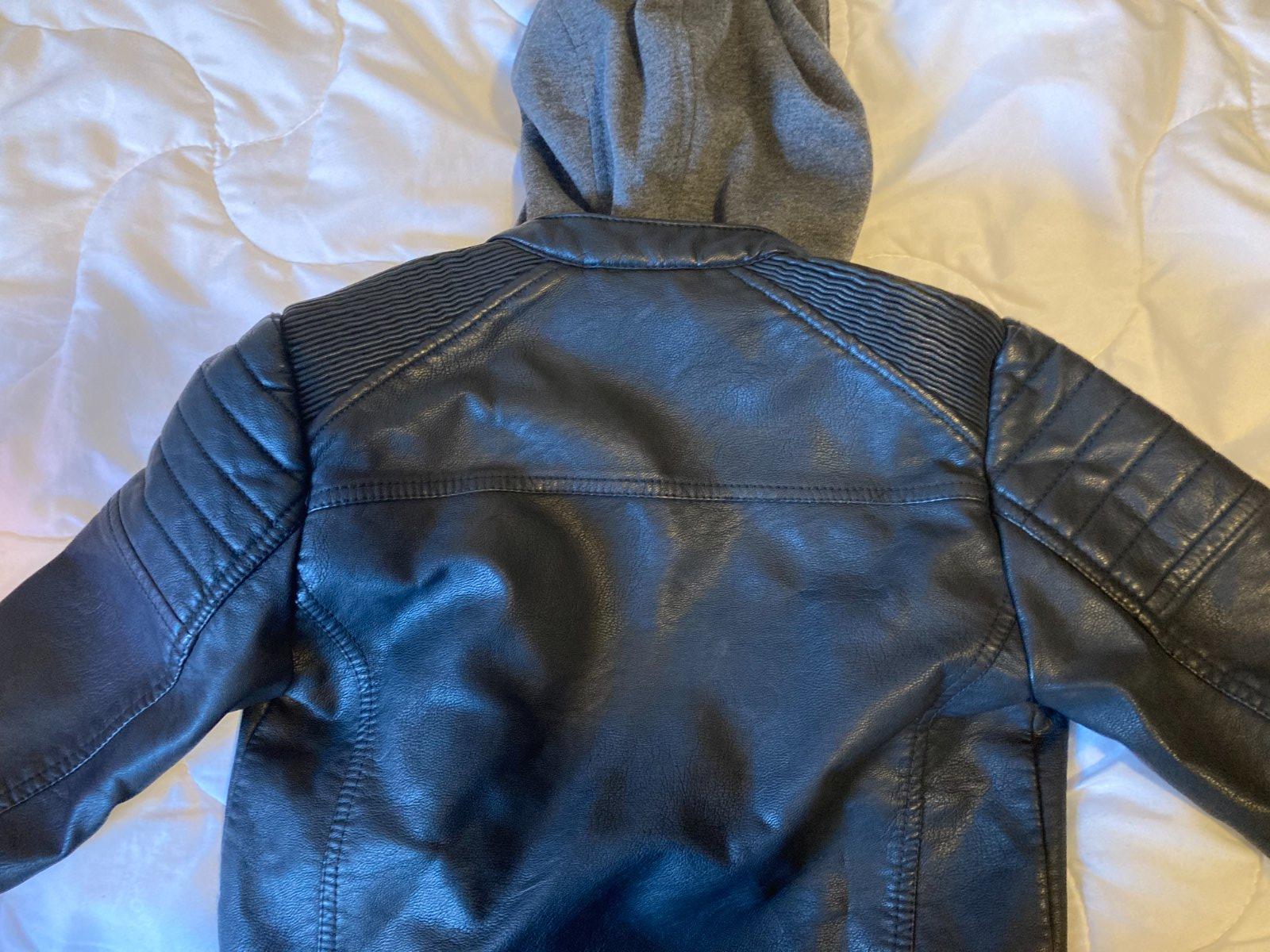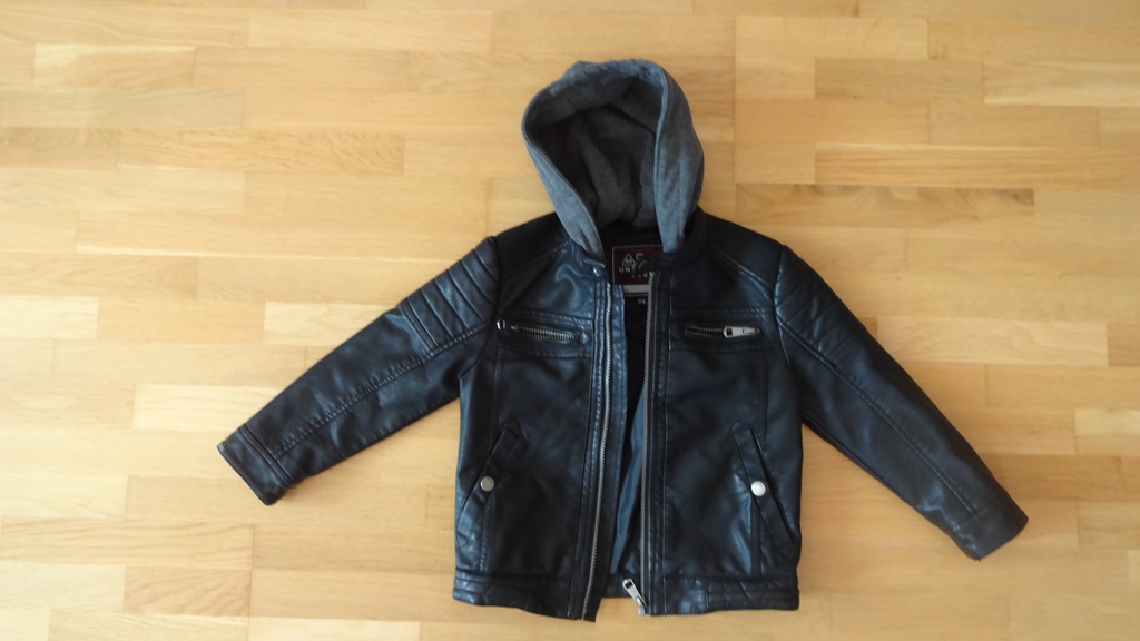 Predám peknú frajerskú minimálne nosenú - mimo chybičku ako úplne novú čiernu koženkovú bundu veľkosti 116, veľmi pekne prepracovaná, NC 29 Euro, trošku ošúchaný jeden rukáv viď foto.