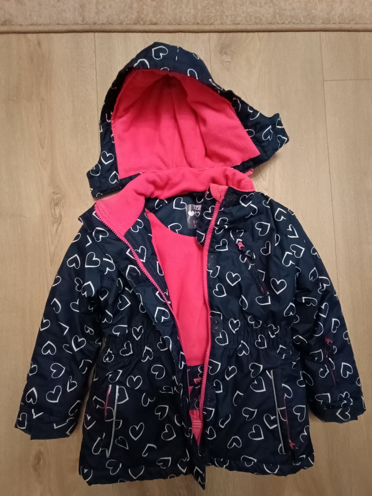 Nemáme kapucňu v dobrom stave, má lesklú podšívku, na chladnejšiu jeseň, miernu zimu