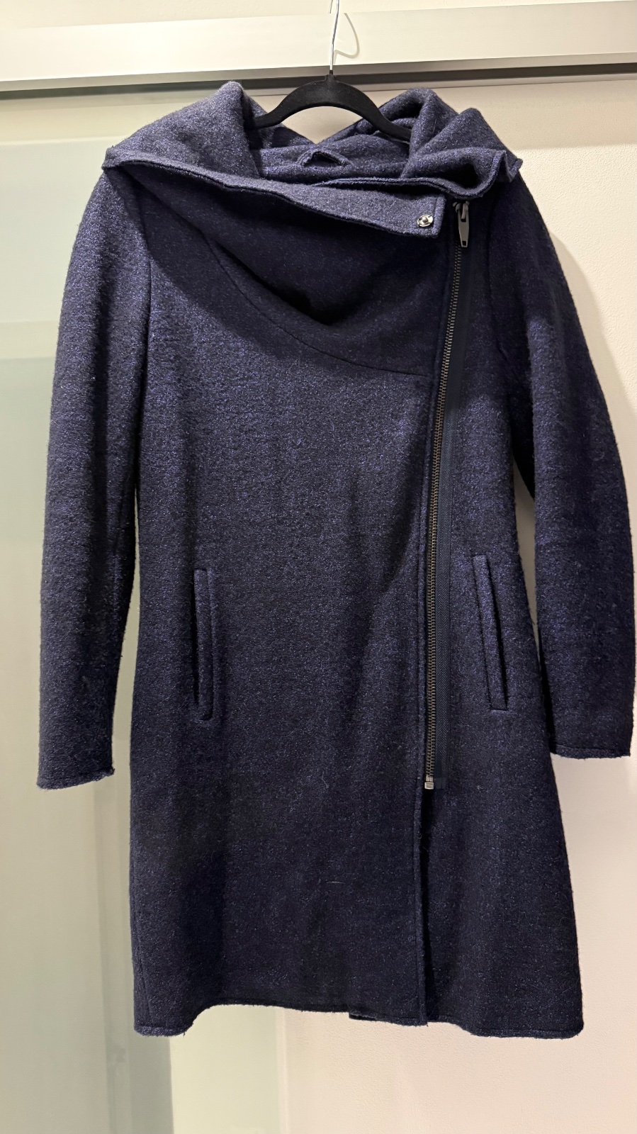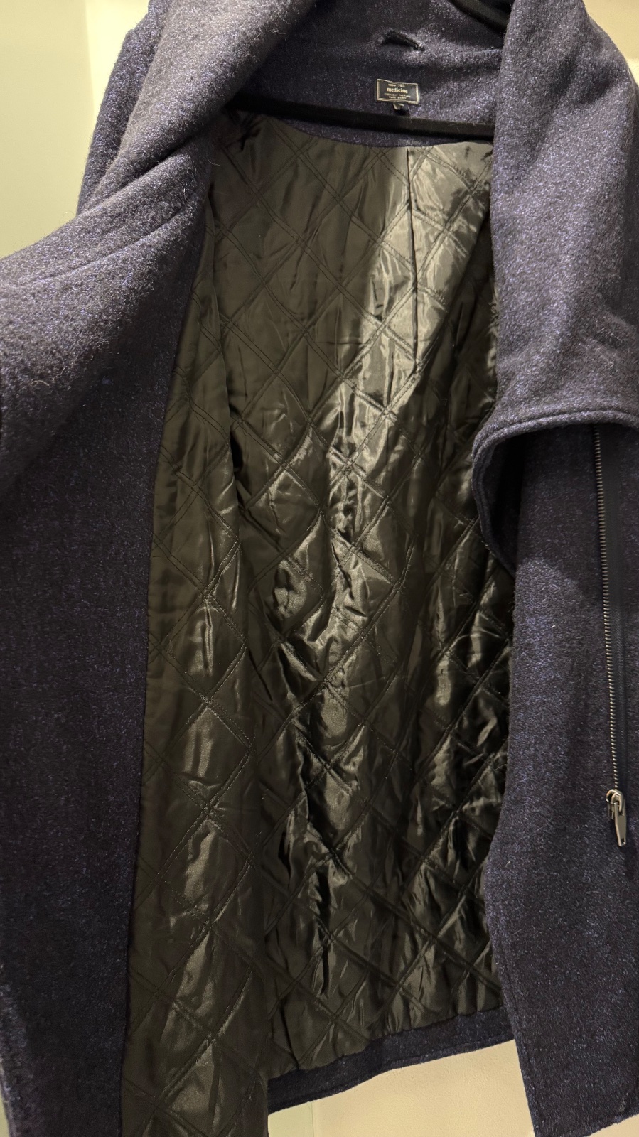 Kabát je na zips, má krásny strih a je vhodný na každodenné nosenie aj elegantnejšie príležitosti.