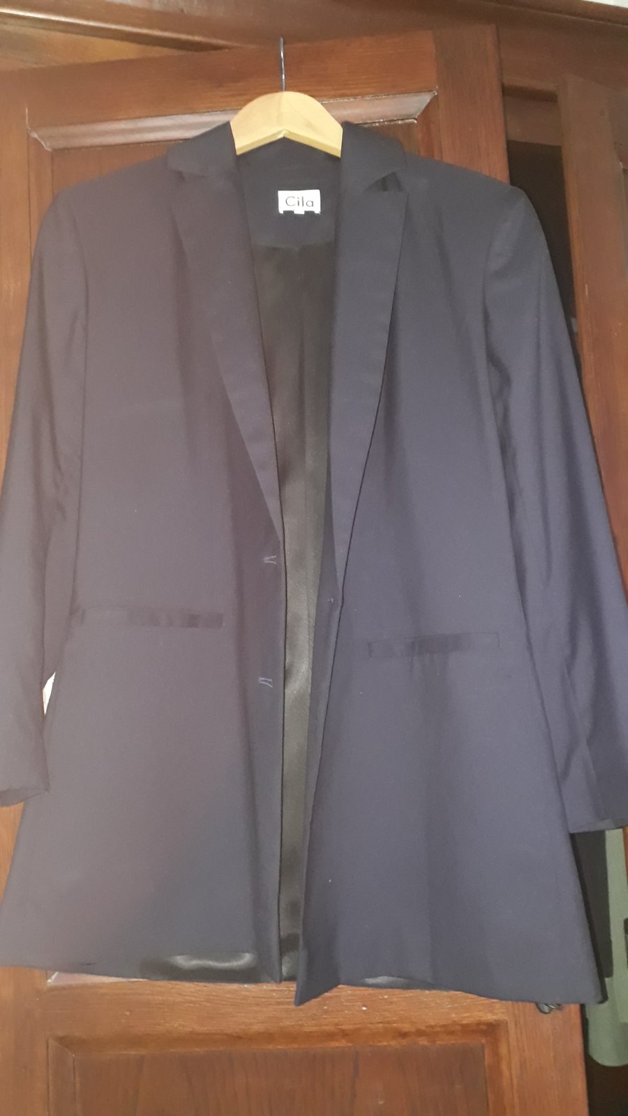 predám ručne šité sako značka cila, 100 % vlna, Celopodšité sako voľnejšieho strihu. Vpredu zapínanie na dva gombíky a výpustkové vrecká. Hrudník 53 cm, pás 50 cm, plece 14,5 cm, rukáv 57,5 cm, celková dlzka 79 cm, ak ste z ba je možnosť osobného inzerátu, pozrite aj ostatné moje inzeráty, mám kopu krásny nových vecí za super ceny. Pôvodná cena saka bola 170 € predám za 60 eur.