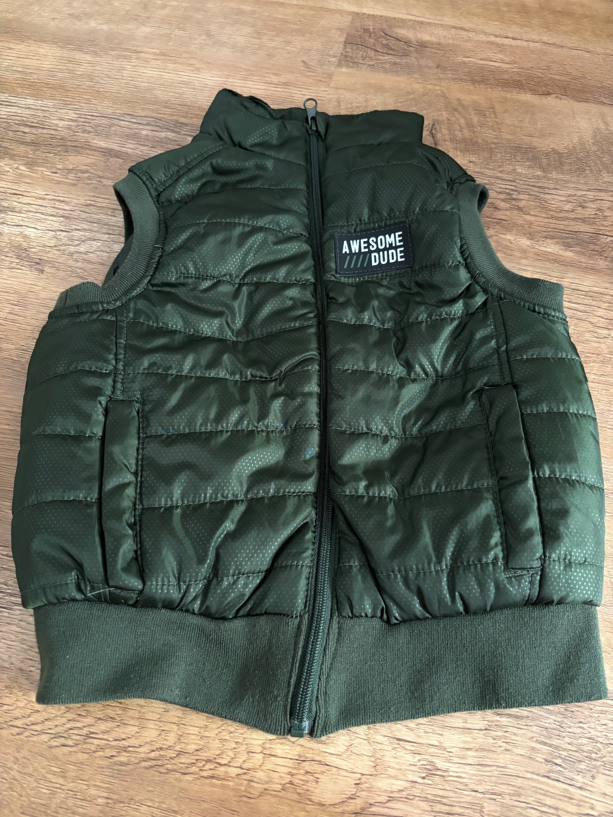 Zelena,tepla,lahucka vesta,podsita modrym fleesom,vpredu vrecka,na zips,v super stave,kvalitna,pisana velkost 116,ale podla mna vydrzi dlhsie ROZMĚRY: dlzka vpredu 52cm,vzadu 57cm,sirka 35cm,od uko...