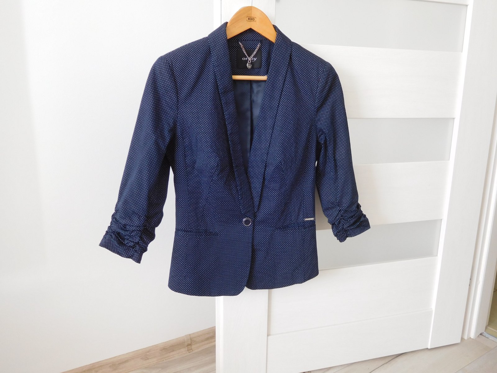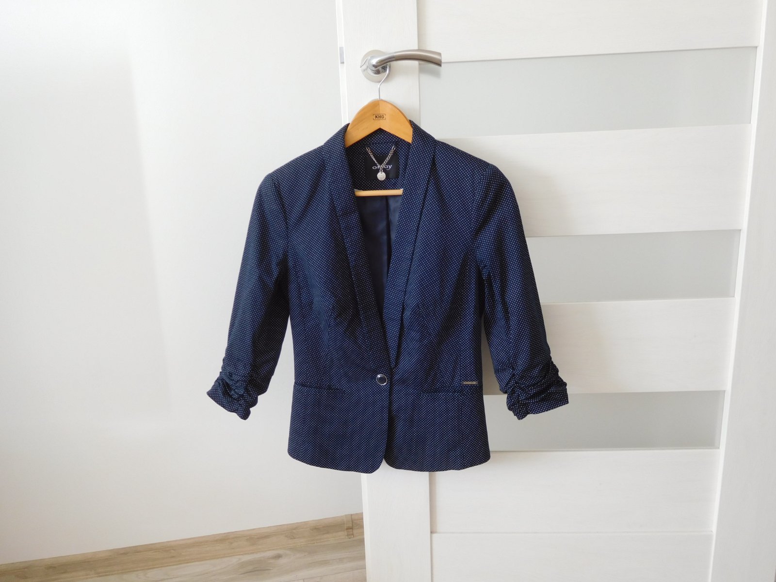 Predám sako tmavo modrej farby bodkované-BUSINESS LOOK-Orsay-36v,Sako je nepoškodené,čisté-krásne sadne na postavu,