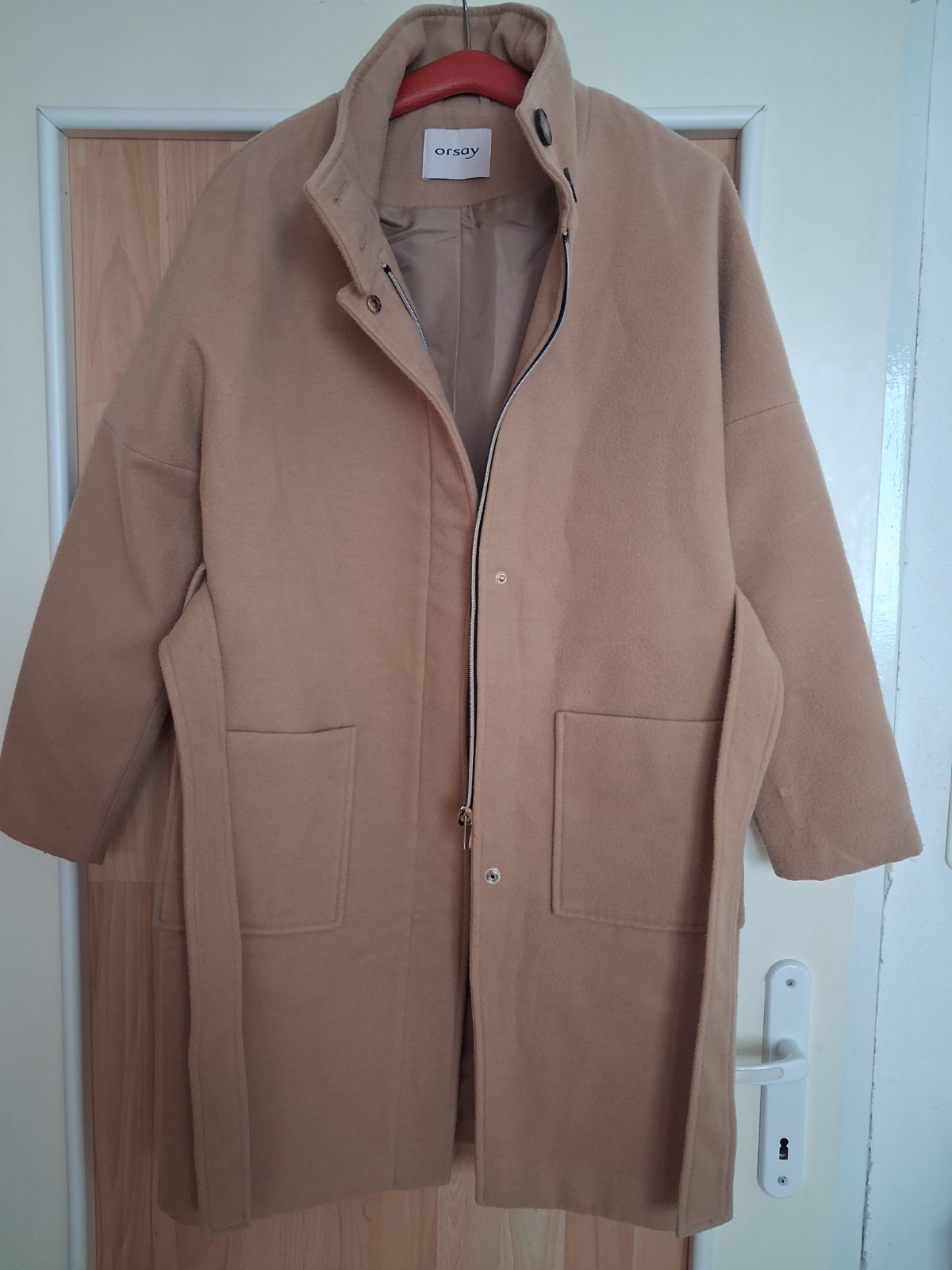 Dámsky kabát do chladných dní zn. Orsay v. 34 + 3 obl. zadarmo - sačko hnedé, nové lpavky a púdrovo ružové sačko