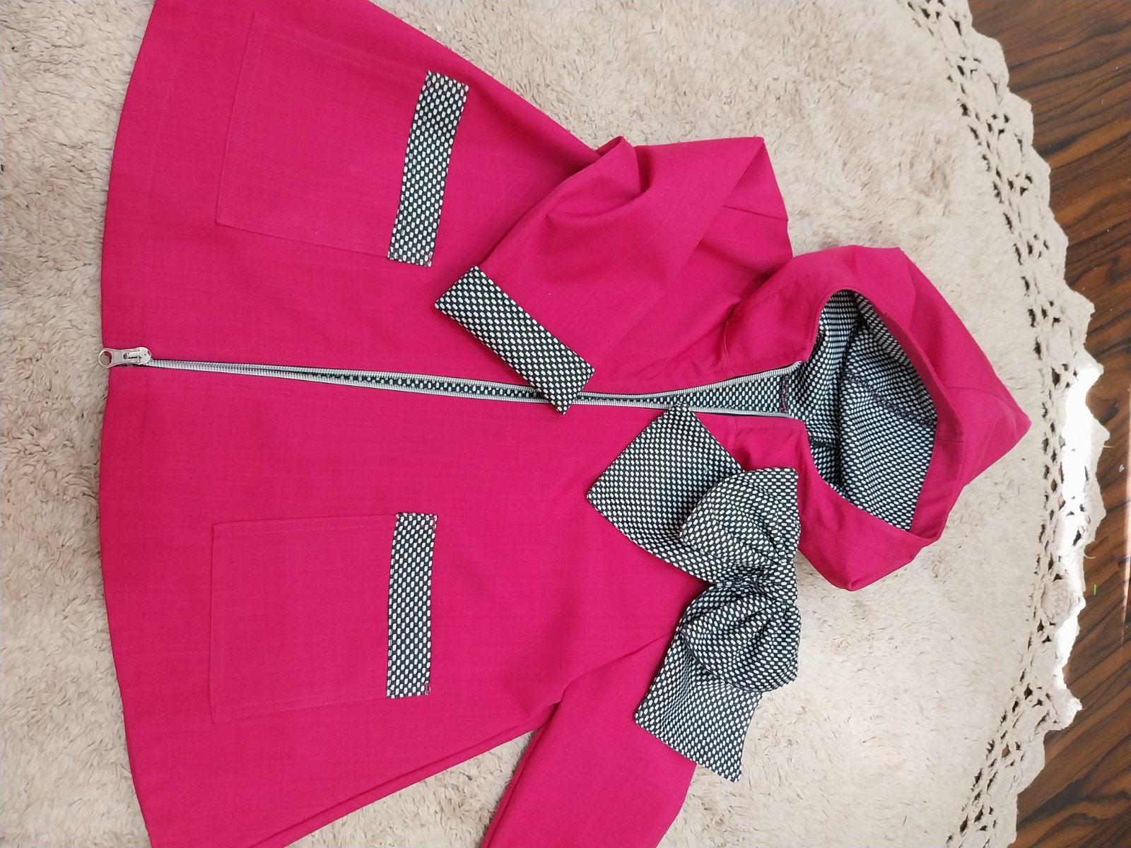Predám nadherne kabatik - magenta farba. Veľkosť by mohla sedieť cca na 104, 110, 116. Treba premerat. Dlzka rukáva sa dá prisposobit- vyhrnutim. Perfektny stav ako novy. Rada premeriam.