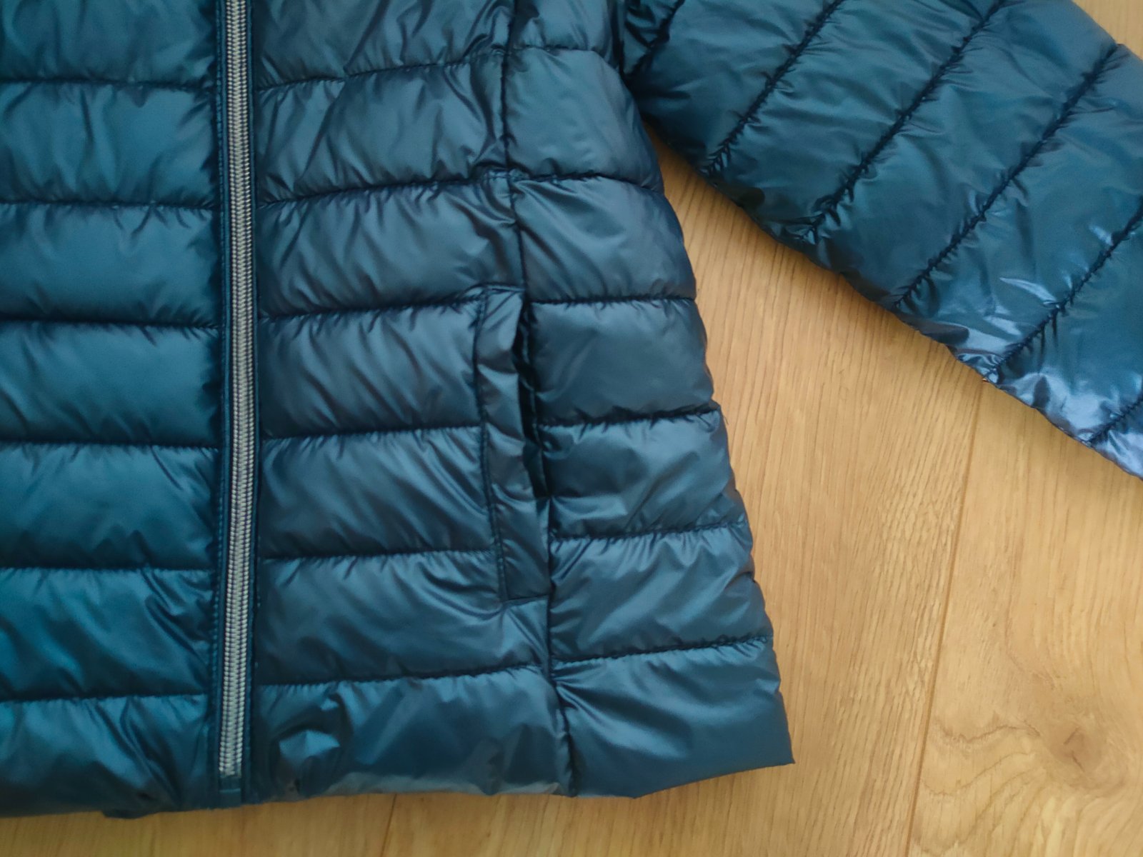 Nosená prechodná bunda značky OVS vo výbornom stave. Krásna modrá lesklá farba, prešívaná. Veľkosť 128, rozmery na foto.