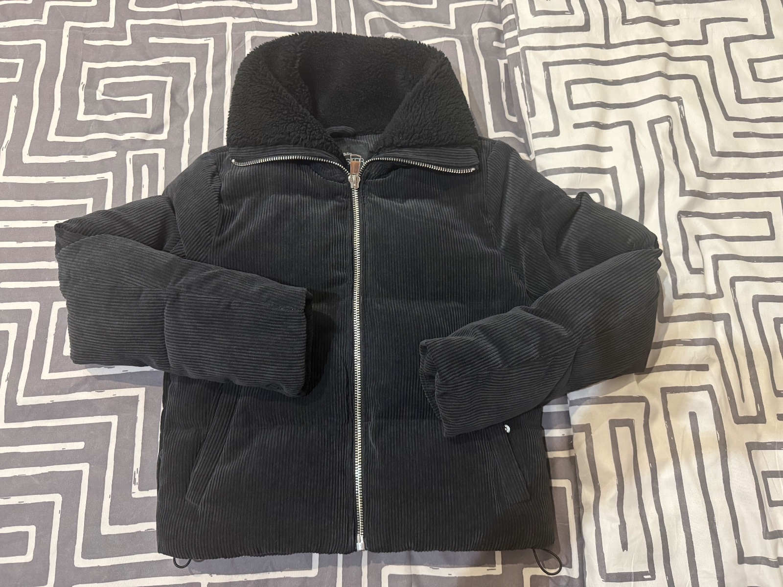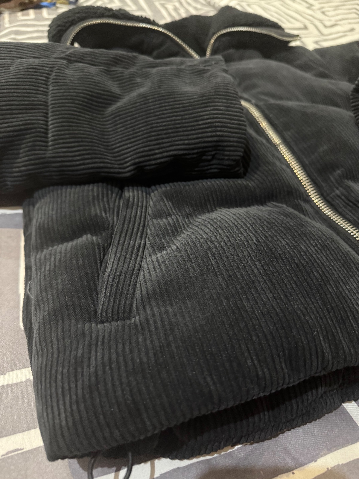 Bez poškodení, teplá bunda bez kapucňa, na spodu guma, aj rukávy končia gumov