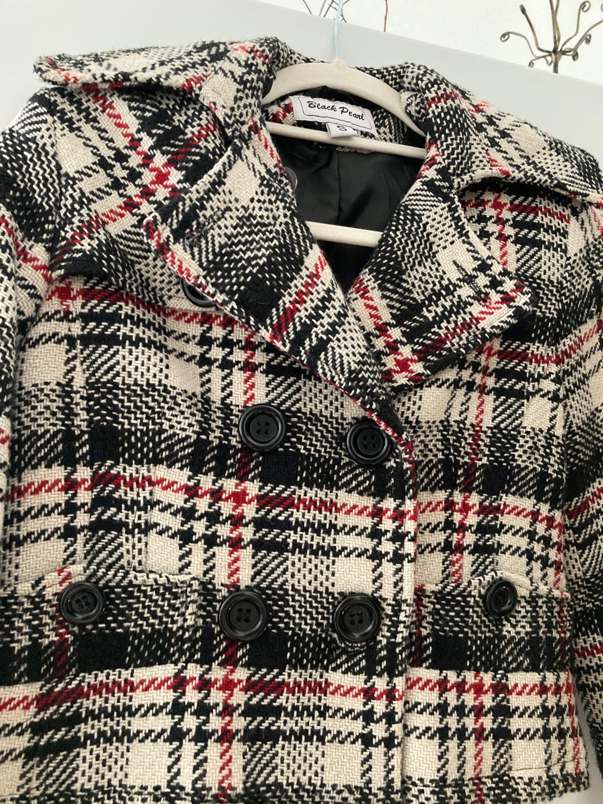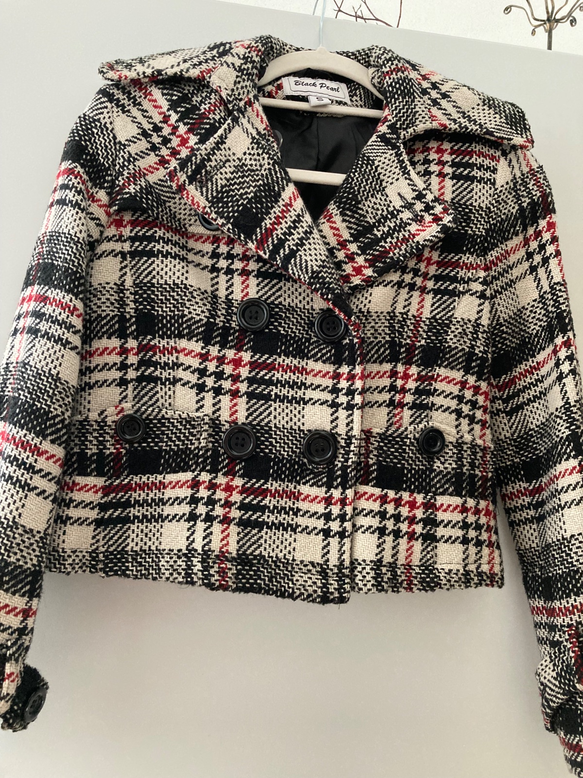 Krásny podšitý károvaný crop kabátik, značka Black pearl, 20 % podiel vlny. Dvoj-radové zapínanie, všetky vrecká funkčné. V perfektonom stave, ako nový - veľkosť cca od XXS - menšie M ko (resp. vhodný aj pre dievčatá od veľ. 158). BOl oblečený len pár krát.