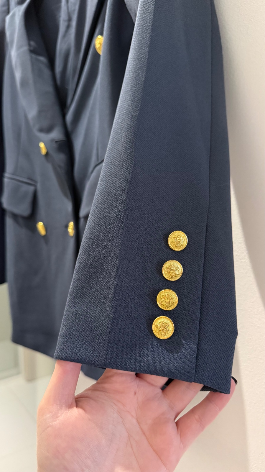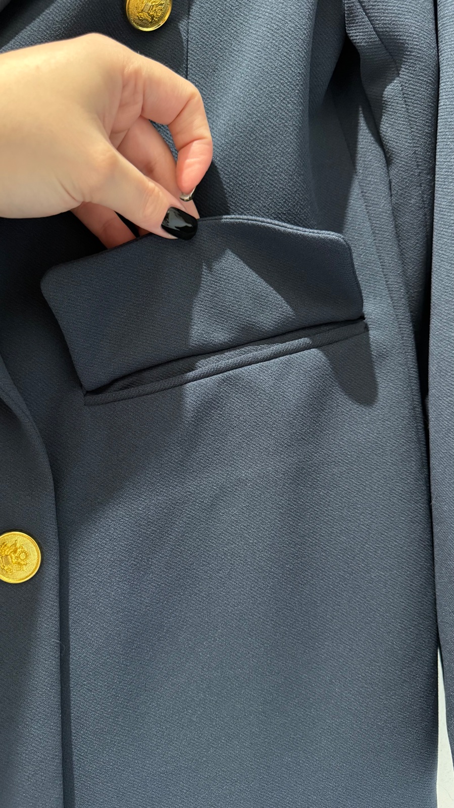 Nepárny počet gombíkov, falošné vrecká.