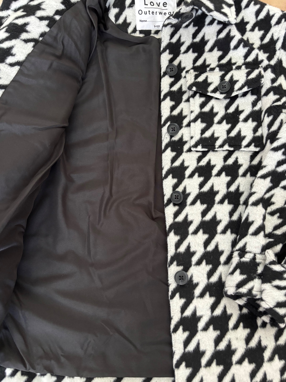 Jarný kabát košeloveho strihu, moderny vzor kohútia stopa. Top stav, obleceny 1x