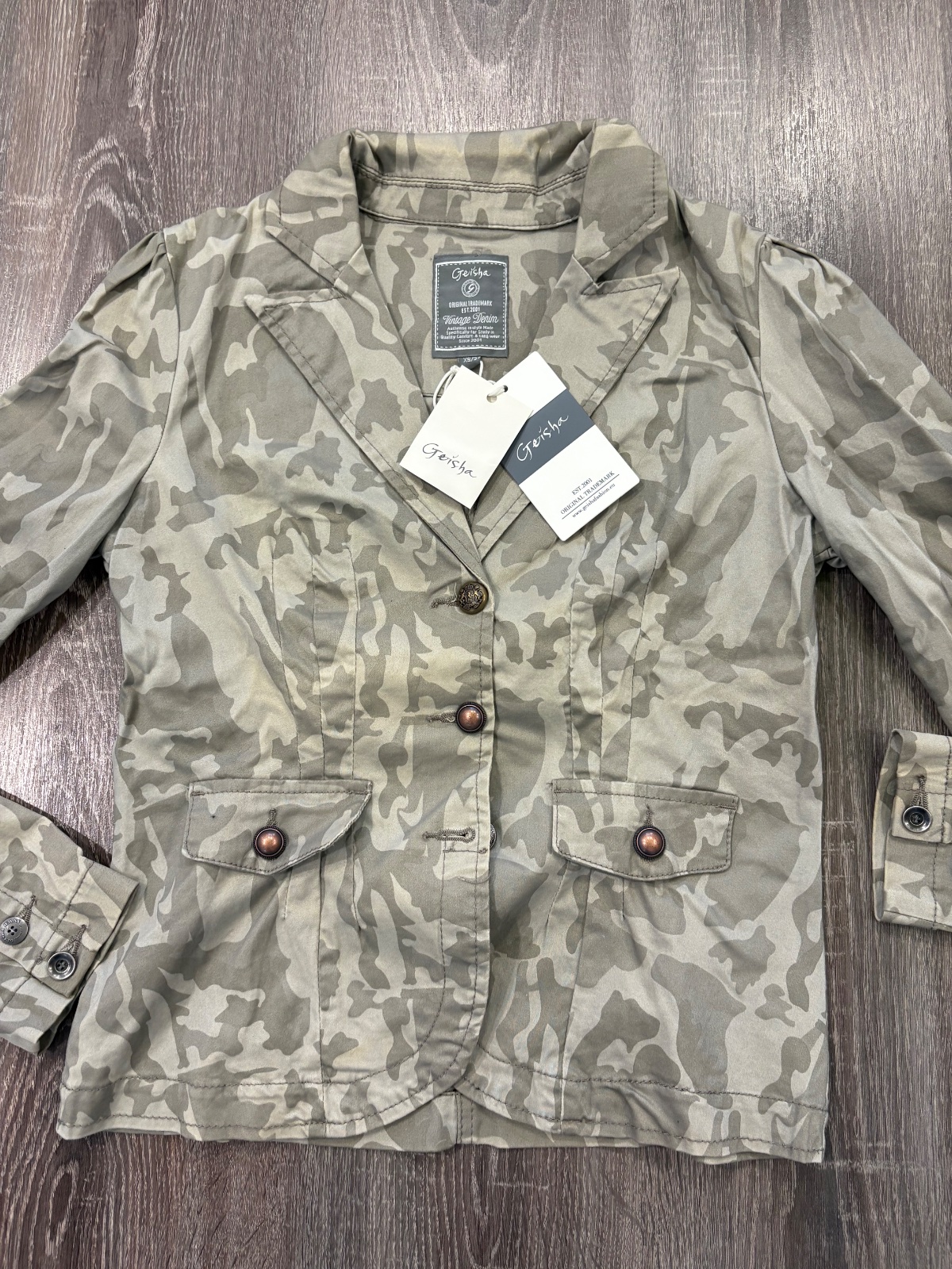 03.GEISHA čisto nové dámske sako , komplet s visačkou vo velkosti XS, super aj ako darček...dlžka je 55cm, dlžka rukáva od krku je 74cm a širka v podpazuší je cca 45x2cm