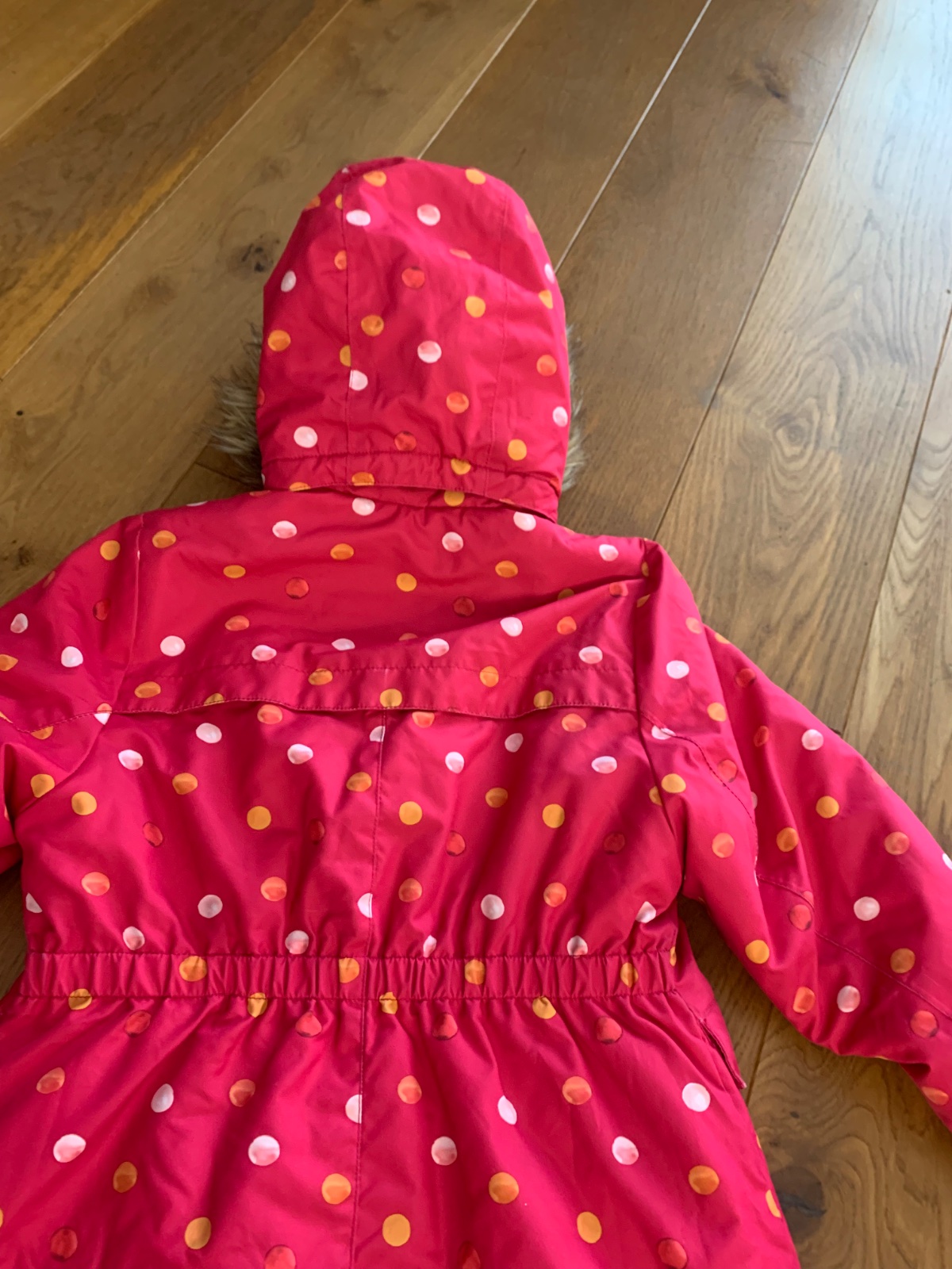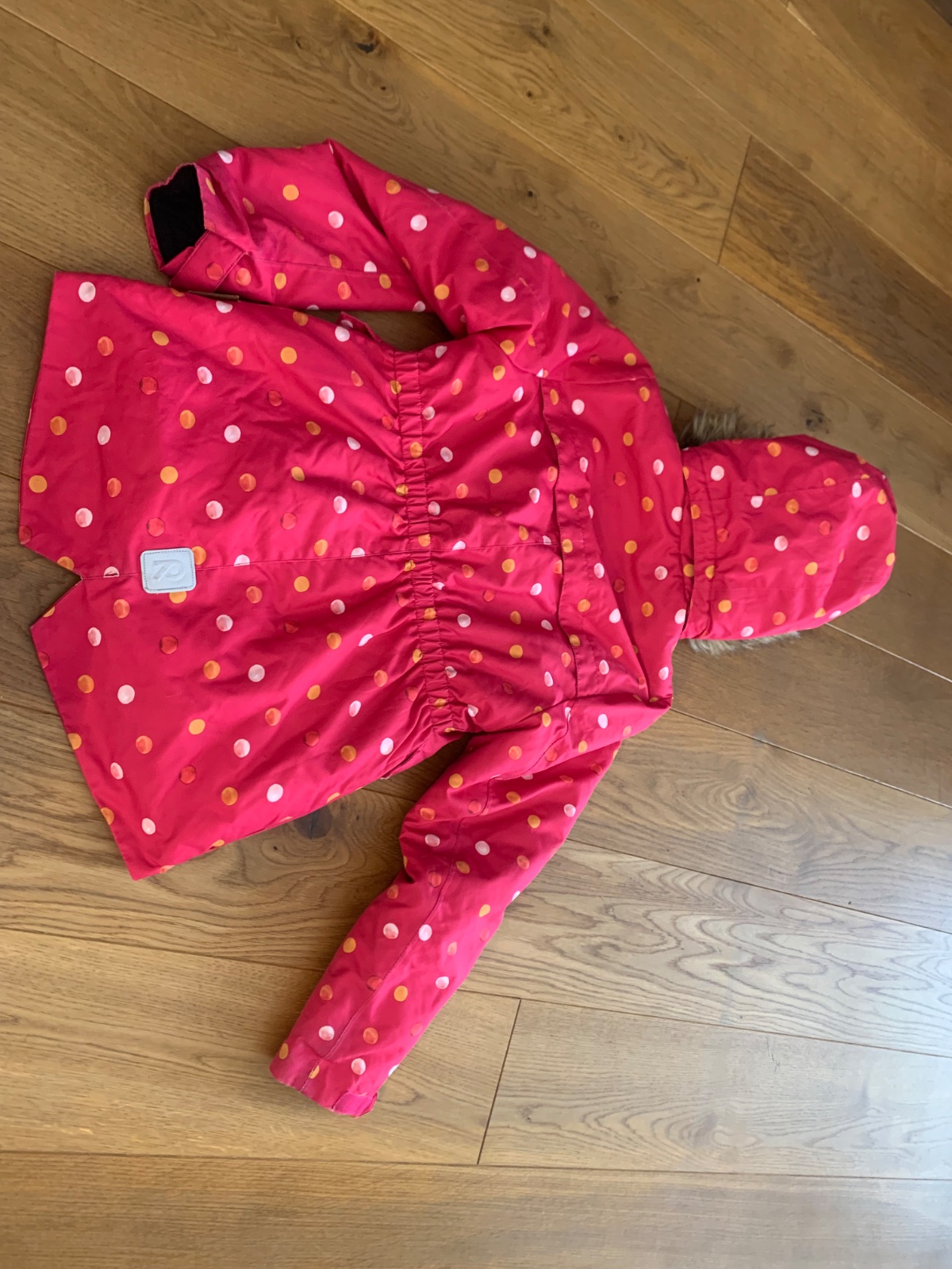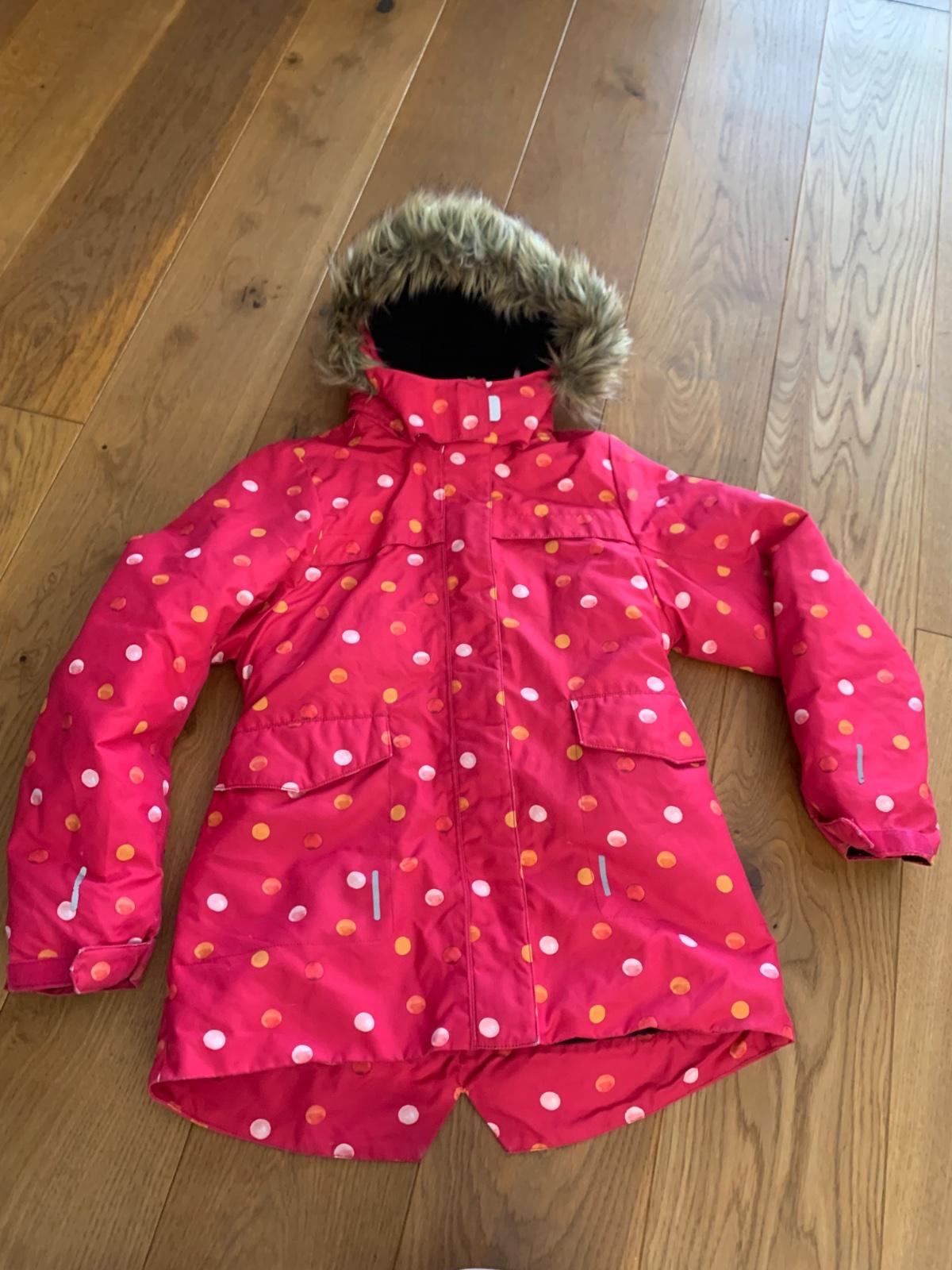 vo veľmi dobrom stave, nosenie viditeľné na lemoch rukávoch, je to podrobne nafotené, inak naozaj super, sedí na 134 a 140, naozaj teplá s nepremokavá