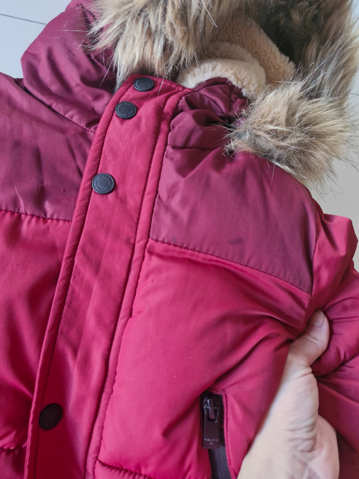 bez známok nosenia,ešte nepraná,teplá s krásnou kožušinou,bordová,veľkosť S,š.47 cm,d.56 cm,rukáv od kapucne 75 cm