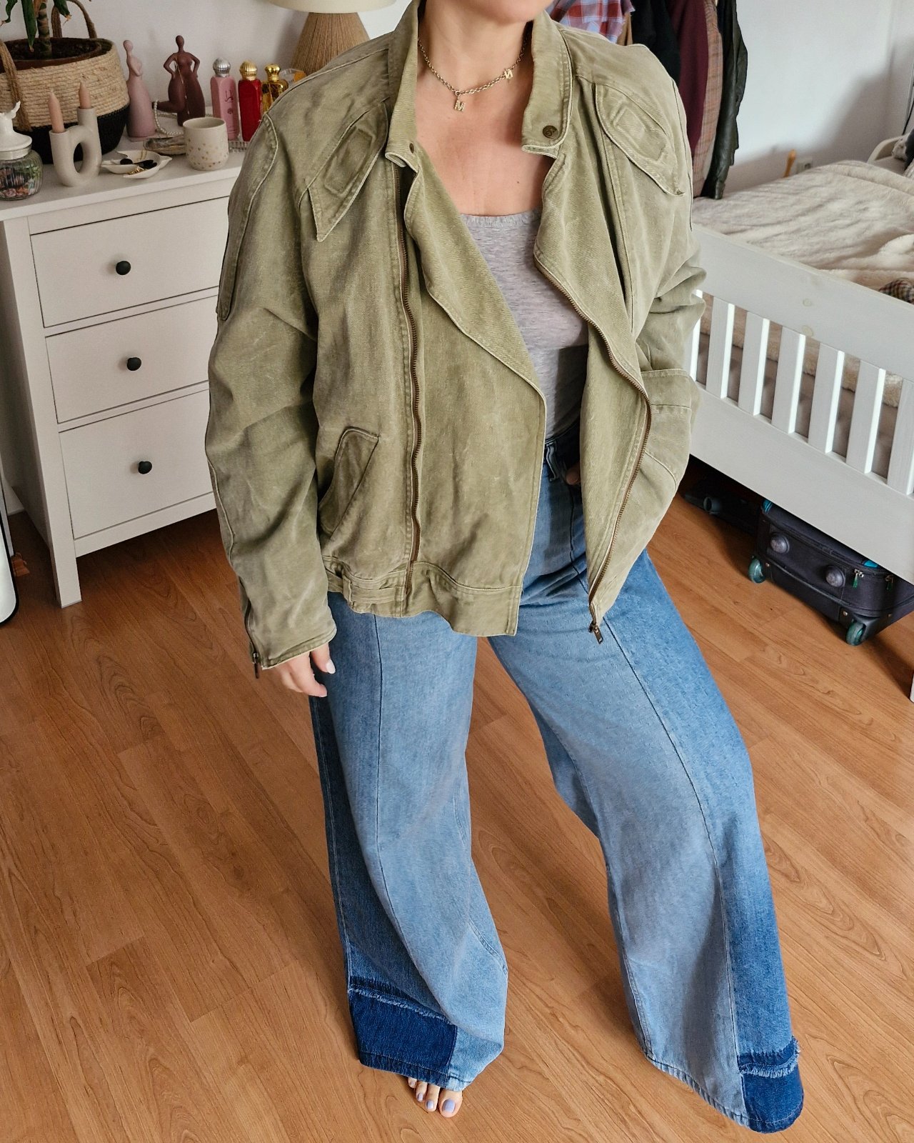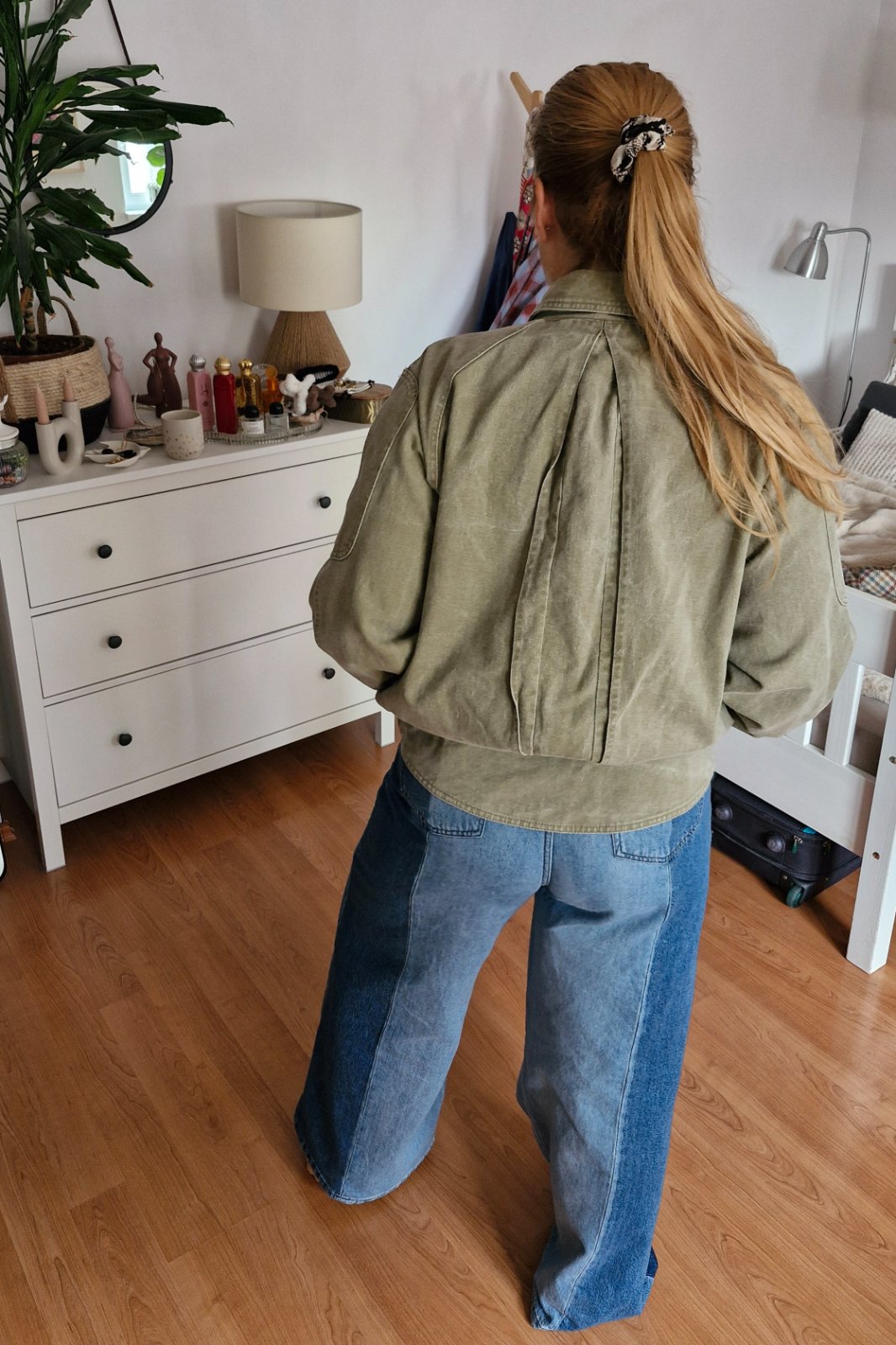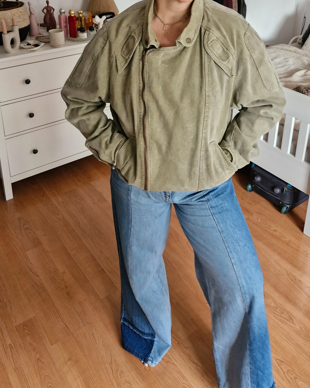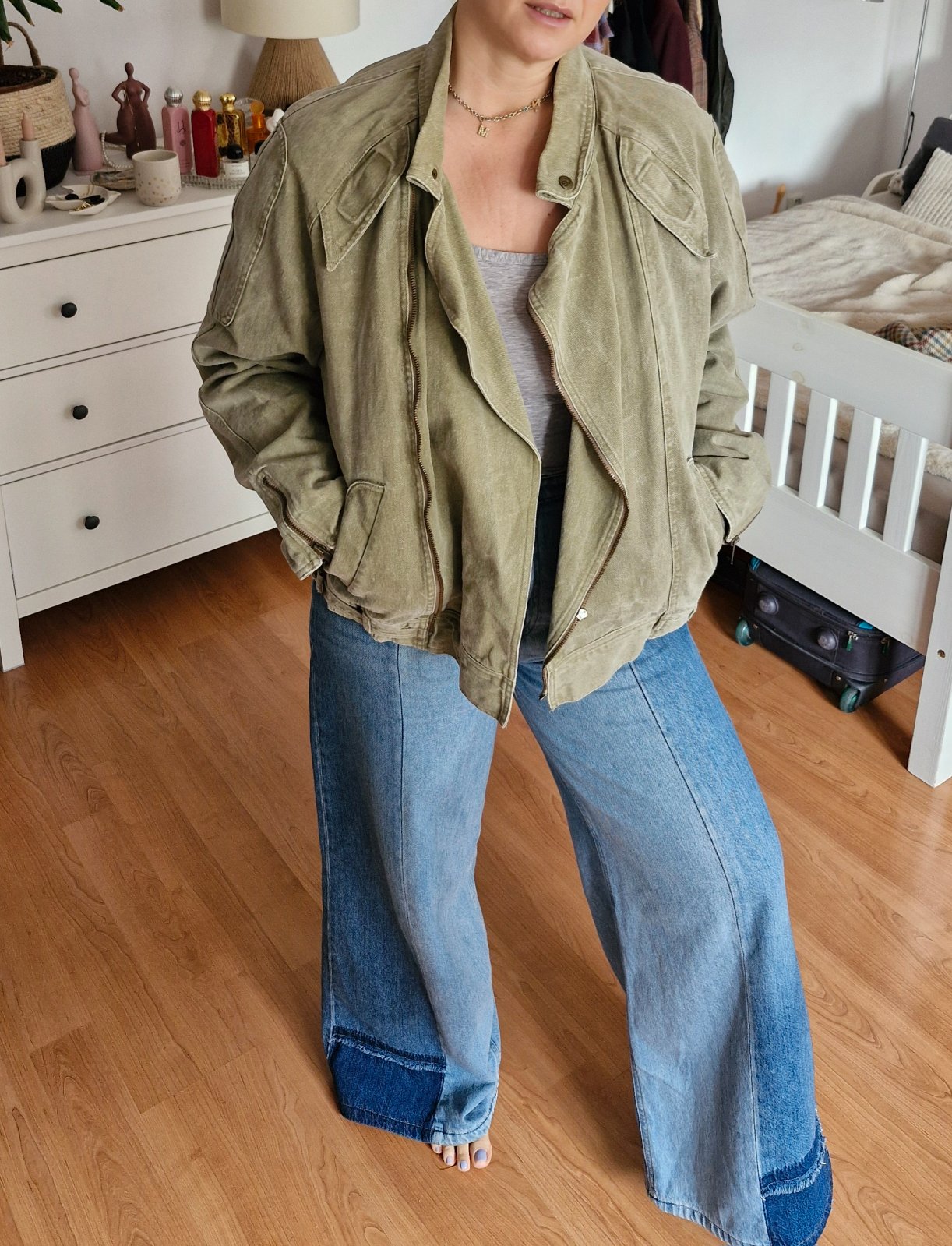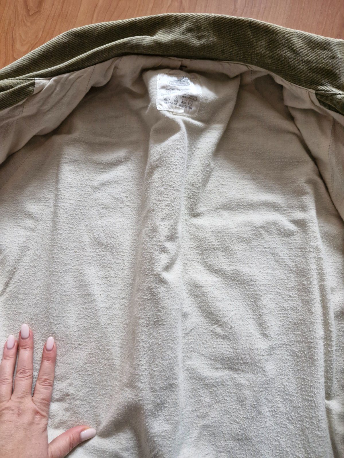 Bunda na prechodne obdobie, podsita, pouzity vzhlad, bez poskodeni. Na golieri v casti ohybu je mierne zmenene zafarbenie- vid foto.