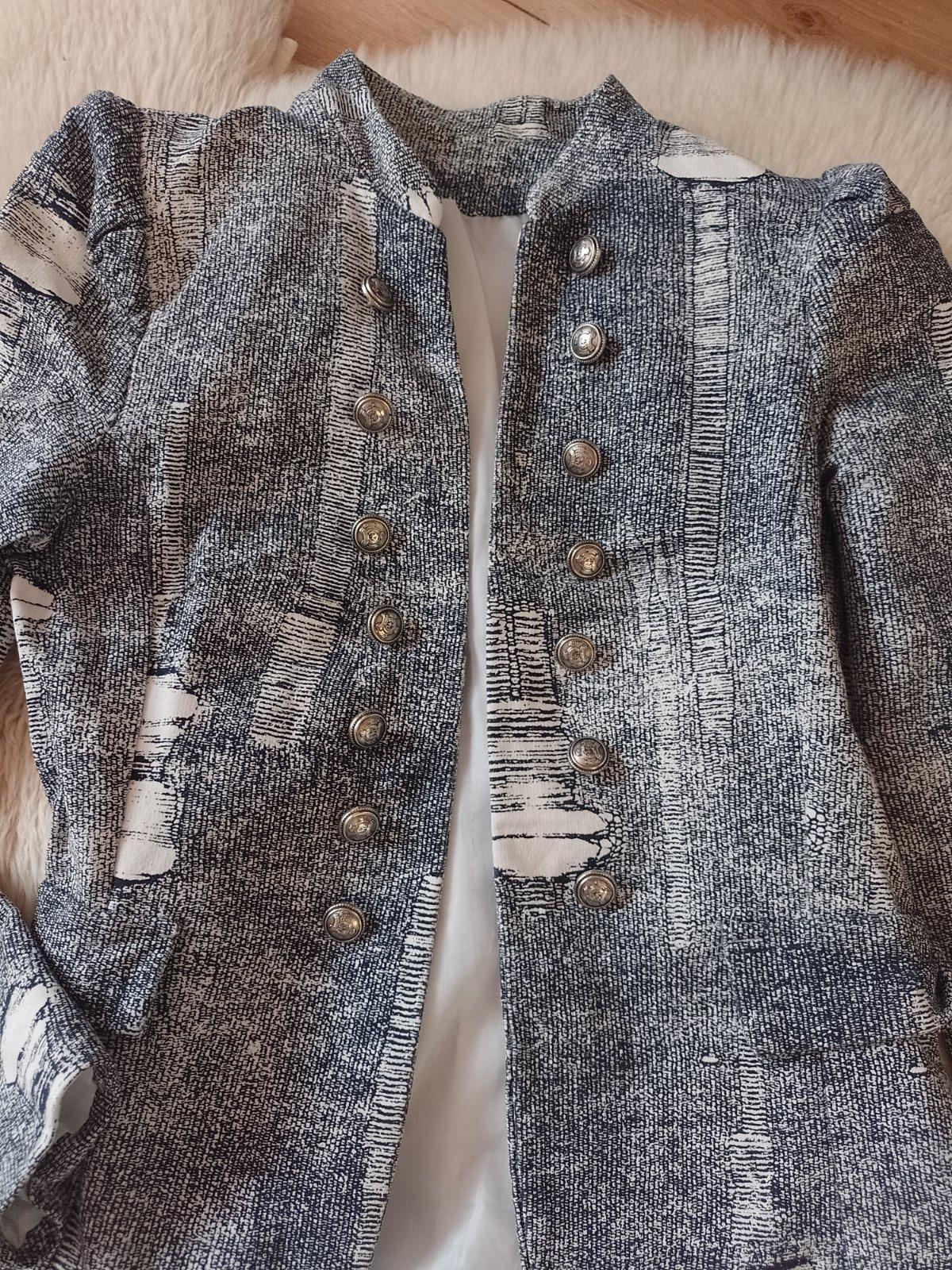 Krásne sako v super stave,na golieri trošku akoby zazltnute, snažila som sa to odfotiť, ale ani nevidieť, ináč top stav