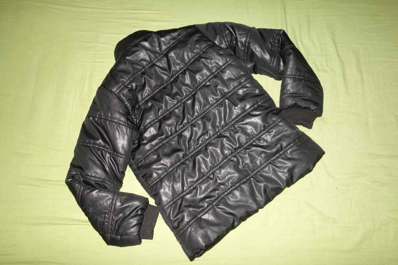 Pekna zimna bundicka vo velmi dobrom nosenom stave- avsak vacok zvnutra je rozparany, takze bude treba zasit. Zapina sa na zips, ktory je zakryty.