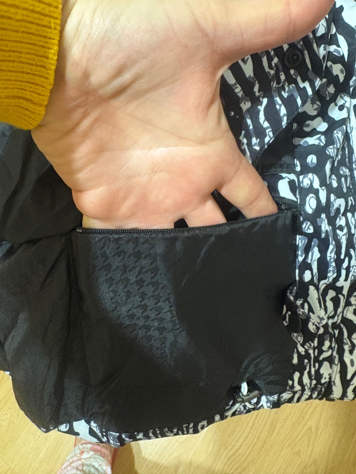 Farba je čiernobiela plus sivá.Kožušinka sa dá odzipsovať a aj kapucňa sa dá.